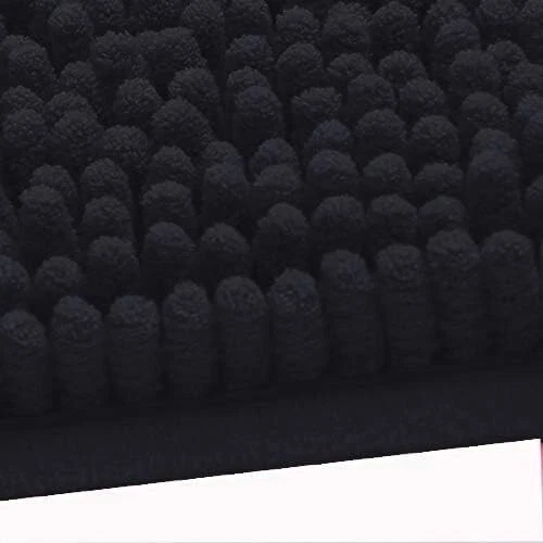 Complete Black Chenille Bath Rug Set: 4-Piece Style for Safety & Comfort