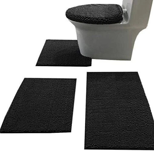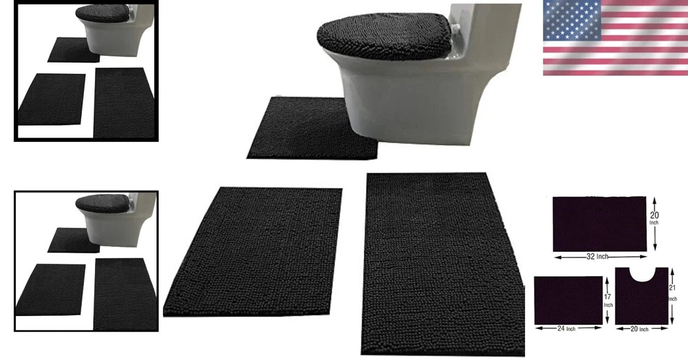 Material: Chenille, Microfiber, Polyvinyl Chloride Set Includes: Toilet Lid Cover, Bath Rug, Bathroom Rug, Toilet Rug, Contour Rug Type: Set Care Instructions: Machine Wash Style: Modern Shape: Rectangle Color: Black Back Material Type: Polyvinyl Chloride Number of Items in Set: 4 Number Of Pieces: 4 Indoor/outdoor Usage: Indoor Is Stain Resistant: No Occasion: Housewarming Pattern: Solid Theme: Love Item Weight: 4 Pounds Room: Bathroom, Kitchen, Toilet, Shower Brand: Unbranded Weave Type: 机械制造 Is Autographed: No Water Resistance Level: Not Water Resistant Min. Required Door Width: 17 Inches Features: Anti-Slip, Non-Slip, Absorbent Pile Height: Medium Pile Product Dimensions: 32"l X 17"w Rug Form Type: Bath Mat Product Care Instructions: Machine Wash Special Feature: Absorbent,non-slip Room Type: Bathroom Age Range (description): Adult gtin13: Does Not Apply UPC: Does Not Apply Item Thickness: 30 Micron Construction Type: Machine Made Size: 20"x 32"/16"x 24"/contour/lid Cover Department: Adults