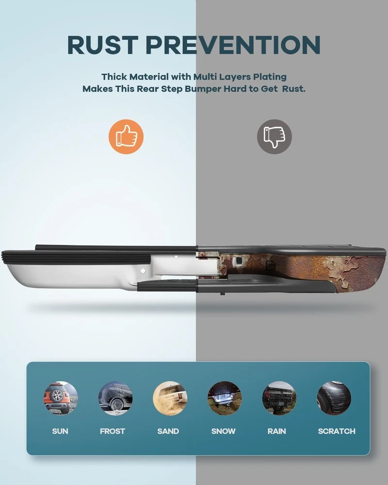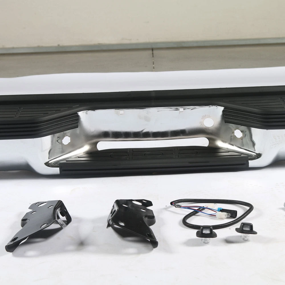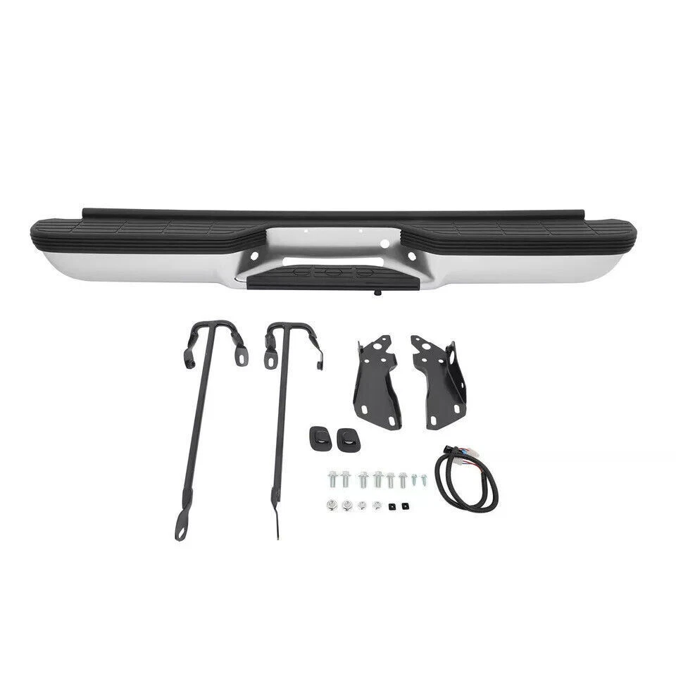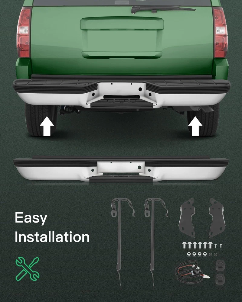 Steel Chrome Rear Step Bumper Replacement for 1993-1999 for Chevy Suburban Tahoe GMC Yukon Rear Bumper Comes without Parking Sensor Holes Product Description About this item [Fit Following Vehicles] - The back bumper Fits for 1993 1994 1995 1996 1997 1998 1999 for Chevy Suburban Tahoe for GMC Yukon [Excellent Technology] - The rear bumper of the car has a polished chrome finish with our laser welding technology for good durability [Durable Material] - Rear Step Bumper plated is made of heavy-duty steel,which is can effectively avoid damage to the vehicle caused by collisions [Good Design] - The steel rear bumper is specially designed to fit your vehicle,fits the body,but also has a decorative effect,making your car look stylish and elegant [Easy Install] - Bolt directly on the original unit to install and replace the original unit,no drilling or modification required,if you have any questions,please contact us Payment Delivery Details Return Feedback Contact us Payment We accept payment by any of the following methods: Delivery Details Shipping Time Your item will ship within 3 days (Mon-Fri) of your cleared payment. Items will be shipped to the shipping address you specify via Paypal only. We are NOT able to change the shipping address once payment has been made. A tracking number will be provided once your item has shipped. Domestic Buyers No shipping to PO BOX and APO addresses. No shipping to PR, AK, HI. International Buyers International buyers please note: Import duties, taxes and charges are not included in the item price or shipping charges. These charges are the buyer's responsibility. Please check with your country's customs office to determine what these additional costs will be prior to bidding/buying. Return All returns must have RMA number. Returns with no RMA number will be avoided! 1. Changed your mind and don't want the item anymore? We back our products with a 30-DAY SATISFACTION GUARANTEE! (Item must be in the original condition as it was received. 30 Days Refund, 30 Day Replacement.). Brand New items will have 30 days warranty or replacement policy. 2. Restocking fees will be charged ONLY on Brand New items. 3. Defective/Dead items will be fully refunded or replaced after matching the serial number with the one in our records. 4. Mobile phones and tablets MUST be restored to factory setting. 5. If your order arrives incorrect or the package is damaged in result of a carrier company, you must notify us within 4 days of receipt. Defective items will be credited only after matching the serial number with the one in our records. We are aware of all fraud cases and have all the items details in our records. 6. If there is a quality issue or malfunction with the product, we strongly suggest you to contact the original manufacturer. 7. Any item needed to be returned must be securely packaged, insured and shipped with tracking for safety. We cannot be responsible for lost damaged packages. We carefully inspect returned items upon receipt before any possible refunds, credits, or exchanges. Feedback Customer satisfaction is our top priority. Please give us a chance to resolve any issues before posting a feedback. If you have any problem with your order, please contact us and we will do our best to make you satisfied. Contact us Business Hours: Monday - Friday : 9:30AM – 5:30PM Eastern Standard Time. Saturday, Sunday Closed. For any questions or concerns, please feel free to contact us!