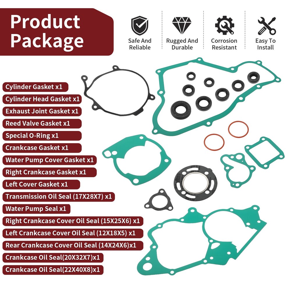 Complete Engine Top & Bottom End Gasket & Oil Seal Kit For Honda CR80R 1986-1991 Note: Please Compare Your Original Unit With The Picture. 100% Brand New and High Quality. Product Info: Our stock photos shown are of the actual item. IN STOCK AND READY TO SHIP Replace OEM Part Number: 12191-GC4-308 12251-GC4-600 18291-GC4-600 14132-GS2-780 11191-GBF-830 MOTO1988®Brand Products This part fits the following models: For Honda CR80R 1986-1991 Package: Cylinder Gasket x1 Cylinder Head Gasket x1 Exhaust Joint Gasket x1 Reed Valve Gasket x1 Special O-Ring x1 Crankcase Gasket x1 Water Pump Cover Gasket x1 Right Crankcase Gasket x1 Left Cover Gasket x1 Transmission Oil Seal (17X28X7) x1 Water Pump Seal x1 Right Crankcase Cover Oil Seal (15X25X6) x1 Left Crankcase Cover Oil Seal (12X18X5) x1 Rear Crankcase Cover Oil Seal (14X24X6)x1 Crankcase Oil Seal(20X32X7)x1 Crankcase Oil Seal(22X40X8)x1 Payment Delivery details Terms of sales About us Contact us Payment We only accept payment by PayPal. PayPal is the only online payment method we accept. Please make sure you have a valid/confirmed PayPal account prior bidding. Delivery details Note: Warehouse and logistics companies have been severely short of staff recently. And because of too many parcels backlog in peak season, staff can not timely processing. As a result, the delivery of parcels has been slow recently. If you urgently need to receive the goods, please contact us to consult the logistics delivery time before purchasing. 1. We ship to EBAY'S ADDRESS ONLY. So please confirm your address is correct, and if you want to change the delivery address, just feel free to contact us when you purchase. 2. Item will be shipped within 2 business days after payment confirmation. 3. We will ship this item to buyers by USPS - First Class Package(Standard 3-5 Business Days) or USPS - Priority Mail or UPS - Surepost (Economy 1-6 Business Days). Please pay attention that import duties, taxes and charges are not included in the item price or shipping charges. Check with your country's customs office to determine what these additional costs will be prior to buying. Thank you. Terms of sales If you receive the item that have any quality problem or damaged, please feel free to let us know and provide the photos. We offer free replacement or full refund if it's our responsibility that causes the mistake. But we will not accept the return if the item damaged by the buyer's operational errors. If you are not 100% satisfied with the items for other reasons and ask for refund. Please be noted that only the listing price excluding shipping fee would be refunded. Items should be returned with original packages. About us Please feel free to contact us anytime if you have any questions. If you are satisfied with our items and service, leaving us an ALL-5-STAR and positive feedback would be greatly appreciated. Your encouragement will keep us moving forward. Your satisfaction is our final goal! Contact us We care about our valued buyers. We aim at satisfying every visitor, no matter what kind of situation you meet with, we will be right here to serve you. If you have any questions, our Customer Service staffs will be very glad to help you. We try our best to reply to your emails as soon as possible. Please allow 24 business hours for us to respond. Complete Engine Top & Bottom End Gasket & Oil Seal Kit For Honda CR80R 1986-1991 Note: Please Compare Your Original Unit With The Picture. 100% Brand New and High Quality. Product Info: Our stock photos shown are of the actual item. IN STOCK AND READY TO SHIP Replace OEM Part Number: 12191-GC4-308 12251-GC4-600 18291-GC4-600 14132-GS2-780 11191-GBF-830 MOTO1988®Brand Products This part fits the following models: For Honda CR80R 1986-1991 Package: Cylinder Gasket x1 Cylinder Head Gasket x1 Exhaust Joint Gasket x1 Reed Valve Gasket x1 Special O-Ring x1 Crankcase Gasket x1 Water Pump Cover Gasket x1 Right Crankcase Gasket x1 Left Cover Gasket x1 Transmission Oil Seal (17X28X7) x1 Water Pump Seal x1 Right Crankcase Cover Oil Seal (15X25X6) x1 Left Crankcase Cover Oil Seal (12X18X5) x1 Rear Crankcase Cover Oil Seal (14X24X6)x1 Crankcase Oil Seal(20X32X7)x1 Crankcase Oil Seal(22X40X8)x1 Payment Delivery details Terms of sales About us Contact us Payment We only accept payment by PayPal. PayPal is the only online payment method we accept. Please make sure you have a valid/confirmed PayPal account prior bidding. Delivery details Note: Warehouse and logistics companies have been severely short of staff recently. And because of too many parcels backlog in peak season, staff can not timely processing. As a result, the delivery of parcels has been slow recently. If you urgently need to receive the goods, please contact us to consult the logistics delivery time before purchasing. 1. We ship to EBAY'S ADDRESS ONLY. So please confirm your address is correct, and if you want to change the delivery address, just feel free to contact us when you purchase. 2. Item will be shipped within 1 business days after payment confirmation. 3. We will ship this item to buyers by USPS - First Class Package(Standard 3-5 Business Days) or USPS - Priority Mail or UPS - Surepost (Economy 1-6 Business Days). Please pay attention that import duties, taxes and charges are not included in the item price or shipping charges. Check with your country's customs office to determine what these additional costs will be prior to buying. Thank you. Terms of sales If you receive the item that have any quality problem or damaged, please feel free to let us know and provide the photos. We offer free replacement or full refund if it's our responsibility that causes the mistake. But we will not accept the return if the item damaged by the buyer's operational errors. If you are not 100% satisfied with the items for other reasons and ask for refund. Please be noted that only the listing price excluding shipping fee would be refunded. Items should be returned with original packages.