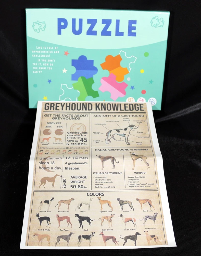 This 1000 piece wooden jigsaw puzzle features a beautiful multi-color image of greyhounds, perfect for any lover of dogs. The puzzle is designed with interlocking pieces that create a complete and stunning image, making it a great addition to any collection. The puzzle is not only visually appealing, but also comes with a reference poster to help put the pieces together. Along with the poster, the backs of the pieces are also printed with section letters to further help with getting the pieces organized. Made from high-quality wood, this puzzle is durable and built to last. Ideal for contemporary puzzle enthusiasts, this puzzle is a must-have for anyone who loves greyhounds or enjoys a good challenge. Doing puzzles has some hidden benefits Excellent qualities : Cultivate concentration, patience, and temper your will Movement development : Train hand-eye coordination and precise small movements Spatial intelligence : Improve visual discrimination of colors and shapes Critical thinking ability : Understand the relationship between parts and the whole, and draw inferences from one example to explore the future Relaxes your mind : Relieve work pressure and release yourself Brain development : Enhance memory and may help prevent or slow brain degeneration Puzzle pieces are all bagged. Each item we ship is carefully packaged to prevent any damage and is shipped immediately with tracking. Anticipated Benefits of Puzzles for Children Overcoming attention deficit Strengthening visual memory Improving problem solving skills Strengthening hand-eye coordination Improve fine motor skills Improve gross motor skills Shape recognition ability Gain the ability of setting goals Learning patience