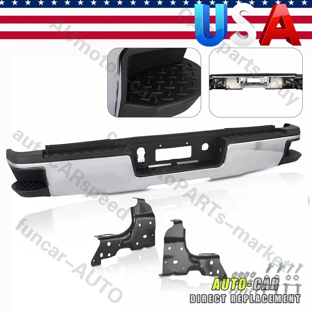 2015-2019 Chevrolet Silverado 2500 HD 2015-2019 Chevrolet Silverado 3500 HD 2015-2019 GMC Sierra 2500 HD 2015-2019 GMC Sierra 3500 HD For Use On Single Rear Wheel Drive Trucks Only For Models Without Park Sensors For Use With Factory Tow Hitch (Hitch Plate Not Included) High Polished Chrome Finish Includes Reinforcement, Brackets, Hardware, Lamps and Step Pad Direct OE Replacement On Jul 23, 2024 at 03:42:08 PDT, seller added the following information: On Dec 7, 2024 at 22:47:47 PST, seller added the following information: On Dec 10, 2024 at 18:38:58 PST, seller added the following information: