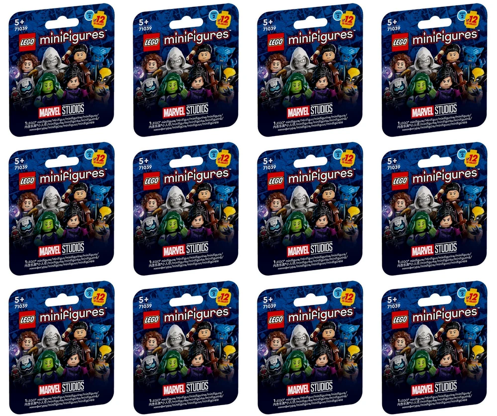 You will receive the Complete Set of (12) Lego Marvel Series 2 Minifigures 71039 without duplicates. Each character is brand new factory sealed in its original box complete with accessories, display plate, and collector's leaflet. Individual Characters Series 1 | 2 Orders are securely packaged in boxes and ship same day by 4 pm est. Shipping is combined at checkout and free for orders $25 or more. Returns are free for 30 days. Questions will be responded to within one day. Product Details: This set includes 12 more Marvel characters from popular movies, tv shows, comic books, and X-Men including the following: Agatha Harkness with purple energy blasts Beast with yellow X-Men mug and sentinel Echo with battle sticks Hawkeye with bow, quiver, and owl Kang with an extra blue head and Ant-Man microfigure Kate Bishop with bow, quiver, target, and Lucky the pizza dog Moon Knight with golden crescent boomerang and scarab Mr Knight with Gus the goldfish and tape recorder She-Hulk with cell phone and law firm ad Storm with lightening bolts and cauldron Werewolf by Night Wolverine with adamantium claws, classic blue and yellow mask, and sentinel head in glass case Lego's collectible minifigures are a fast growing hobby that allows fans of all ages to collect, build, play, gift, and invest! Minifigures specializes in authentic factory sealed Lego cmf's, poly bags, and box sets. Browse over 850 minifigures from all 55 official cmf series: New for 2025 - PreOrder Series 27 Minifigures Today! Series 1 | 2 | 3 | 4 | 5 | 6 | 7 | 8 | 9 | 10 | 11 | 12 | 13 | 14 | 15 | 16 | 17 | 18 | 19 | 20 | 21 | 22 | 23 | 24 | 25 | 26 | 27 D&D | Disney | Super Mario | Marvel | DC Comics | Looney Tunes | Muppets | Lego Movie | Batman | Simpsons | Harry Potter | Ninjago | Bandmates | DFB | Team GB | Unikitty