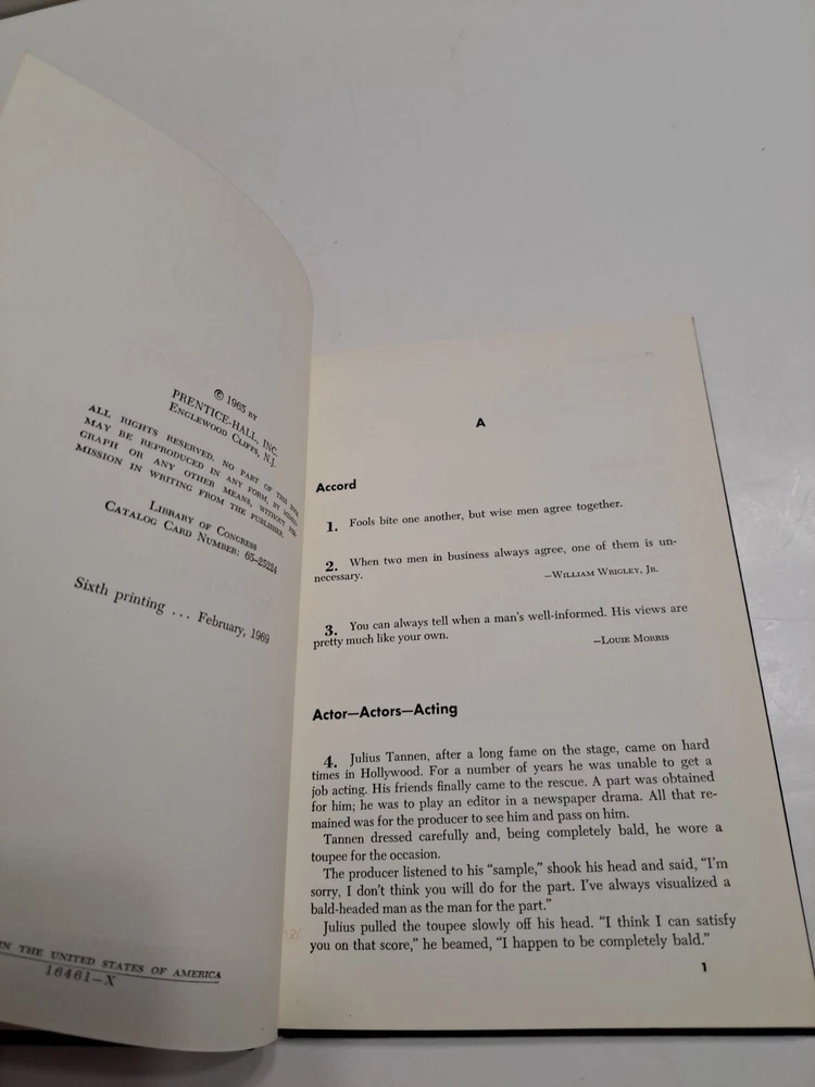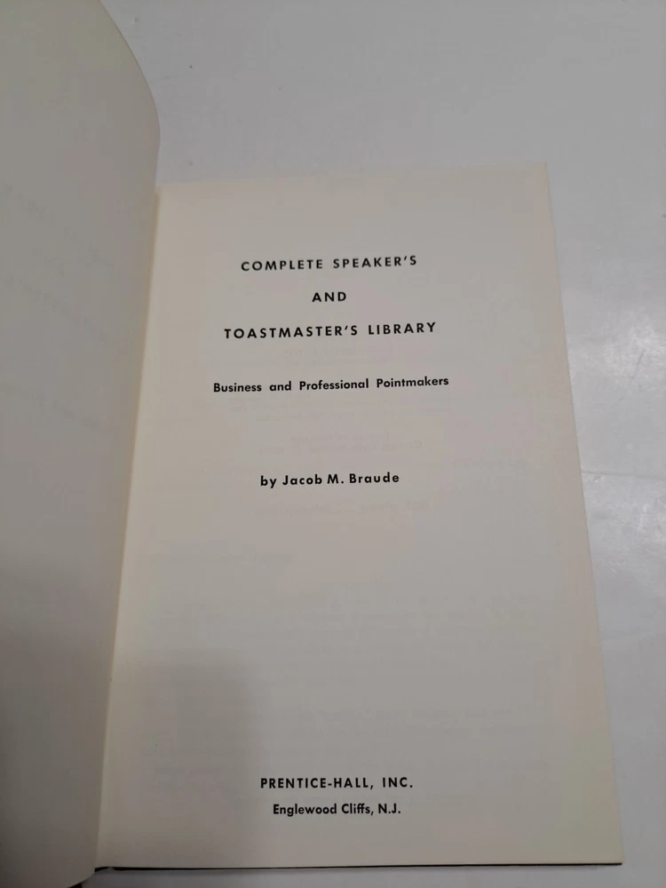 The "Business and Professional Pointmakers" library by Jacob M. Braude is a comprehensive collection of books published in 1969 in the United States. This book focuses on providing valuable insights and tips for speakers, toastmasters, and professionals looking to enhance their communication skills in a business setting. With a strong emphasis on English language, this set of books offers practical strategies and tools for making effective presentations and delivering impactful speeches in a professional environment. Sold as found in estate! We sell items as found in estate We don’t wash or clean the items We are estate liquidators Please don't hesitate to make us an offer We stay in business to help people liquidate and to help you make smart purchases Inv 81825 LZ