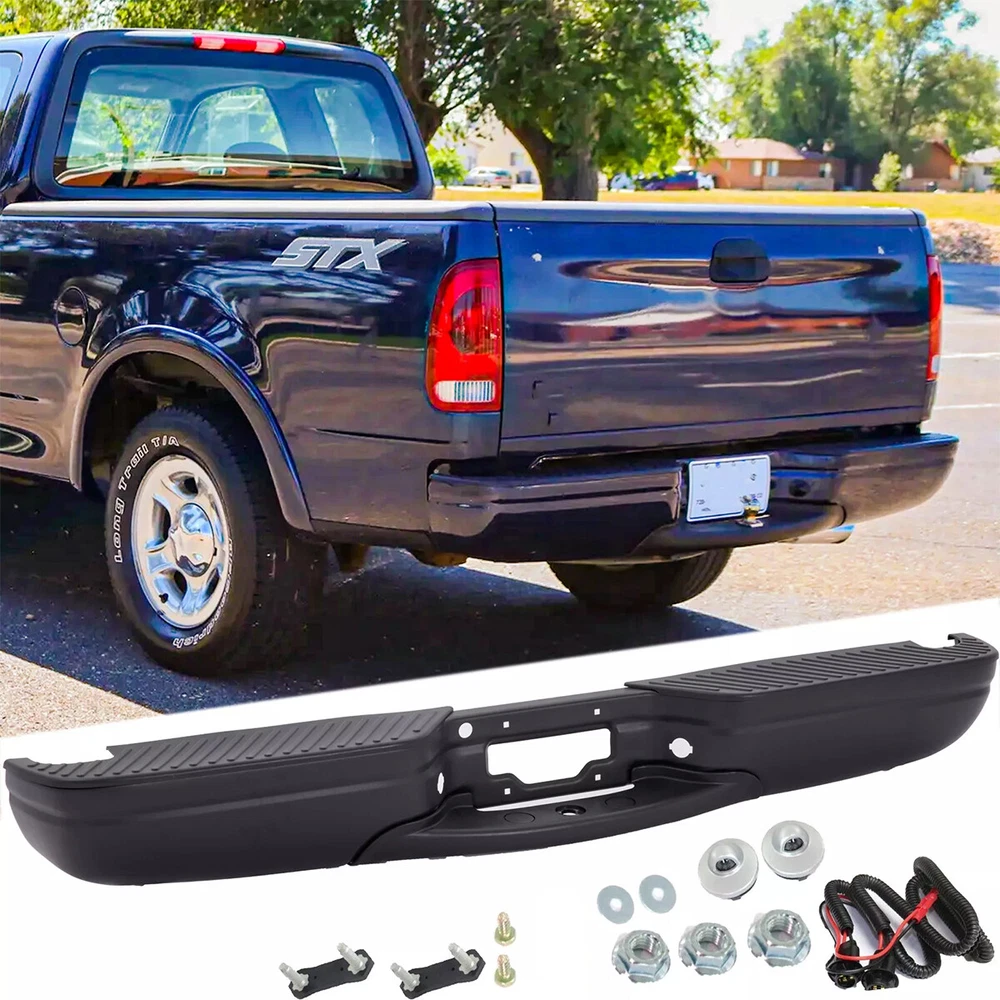 Fitment: Bumper Assembly For 1997 - 2003 Ford F-150 For Styleside Regular & Super Cab Models WITHOUT Park Assist Sensor Holes Package Content: 1x Pickup Rear Bumper with License Plate light 1X Bolts and Screws