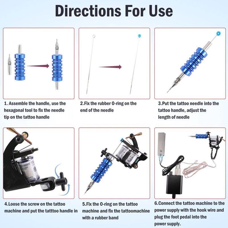 Complete Tattoo Kit 4 Machine Guns 20 Inks Power Supply Foot Pedal Needles 20 Color Dual-machine Tattoo Machine Set Feature: 1. The tattoo machine is made of copper material, quiet and stable, durable. 2. The tattoo grip is made of aluminum alloy, which is ergonomically designed and feels stable, making it easier to hold and not easy to slip off, the tattoo machine makes the tattoo process more comfortable and precise. 3. Equipped with a tattoo power supply, mini size, easy to carry, strong compatibility, suitable for various tattoo machines, and provides 20 kinds of rich color materials, non-toxic and harmless, easy to color, can be used to DIY into your favorite patterns. 4. This tattoo machine set is suitable for beginners, tattoo lovers, tattoo artists. Specification: Tattoo machine material: copper Straight handle material: aluminum alloy Power input voltage: AC 90V-265V Pigment height: 6.8cm/2.7inch Brush length: 9.7cm/3.8inch Power supply size: 9.5 (H) * 7 (L) * 2.5 (W) cm/3.7*2.8*0.98inch Disposable needles height: 5cm/1.97inch Stainless needles height: 5cm/1.97inch Tattoo needle length: 14.2cm/5.6inch White tattoo practice skin size: 19.5 (L)*14.7 (W) cm/7.7*5.8inch Transfer paper size: 29.5 (L)*20.6 (W) cm/11.6*8inch Tattoo grip size: 5 (H)*2.7 (W) cm/1.97*1.1inch Packing size: 23*13*16cm/9*5*6.3inch Package includes: 2pcs x Coil Tattoo Machine 20pcs x Tattoo Inks 1 x Mini Power Supply 1 x Power Cable 2 x Tattoo Grip (red/blue) 1 pair x Disposable Glove 1 x Transparent Hook Wire 1 x Black Foot Pedal 10pcs x Disposable Needles 2pcs x Stainless Steel Needles 10 x Tattoo Needles 1 x White Tattoo Practice Skin 1 x Transfer Paper 1 set x of Tattoo Accessories (47pc*big rubber ring+15pc*big transparent cover+15pc*small transparent cover+56pc*color small cover+49pc black rubber ring) 1 set x Brush 1 x After Cream 1 x Packing Box Payment Delivery details About us Contact us Payment Please send the payment soon, then we can ship out your order soon. Delivery details Shipped by USPS from NJ, US About us muchl_95 is a online wholesale seller for all kinds of electronic accessories. We carry a wealth of consumer electronic accessories, such as computer peripherals, laptop accessories, game consoles accessories, cell phones accessories, digital cameras accessories and other electronic. Contact us Any question, welcome to contact us.