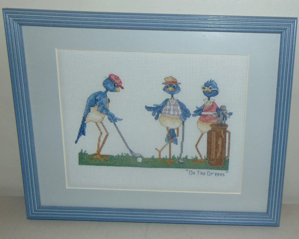 This charming piece of artwork features a group of colorful birds enjoying a game of golf. Measuring at 14 inches by 11 inches, it comes already framed and ready to display in your home or office. The intricate embroidery work showcases the skillful technique of cross stitch, making it a valuable addition to any collection of needlecrafts and crafts. This item belongs to the categories of finished cross stitch pieces, finished embroidered pieces, embroidery and cross stitch, needlecrafts and yarn, and crafts. Its aspects include being a framed cross stitch and utilizing the cross stitch type of embroidery. Invest in this delightful piece of art today!