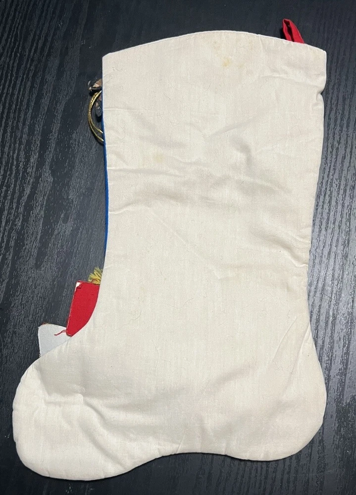 Shape: Reindeer Type: Stocking Vintage: Yes Theme: Christmas Set Includes: Christmas Stocking Subject: Santa Color: Multicolor Brand: Handmade Handmade: Yes Material: Linen Features: Attached Items, Embellished, Handmade, Vintage Occasion: Christmas