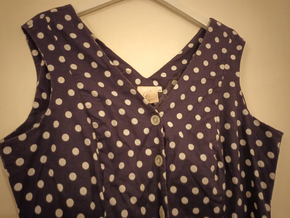 Very good condition. The chest measures 44 inches, the waist cinches with a belt, in from 40" and hips to 48". It's not lined. It's 45 inches long. It is labelled size 20 but the chest measurement is size 18, so listed as size 18. This great item will be sent to you by second class post. Please see the other listings for more clothing plus footwear.