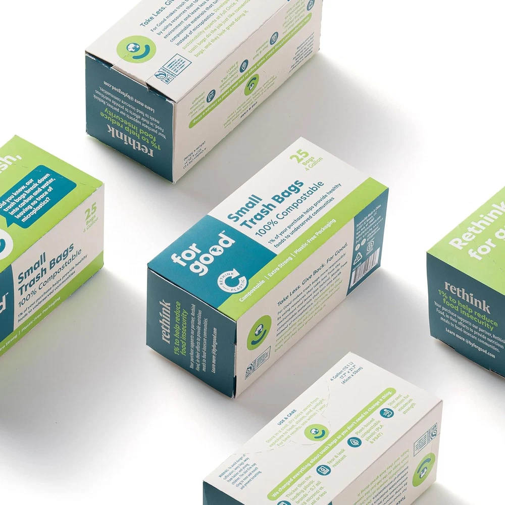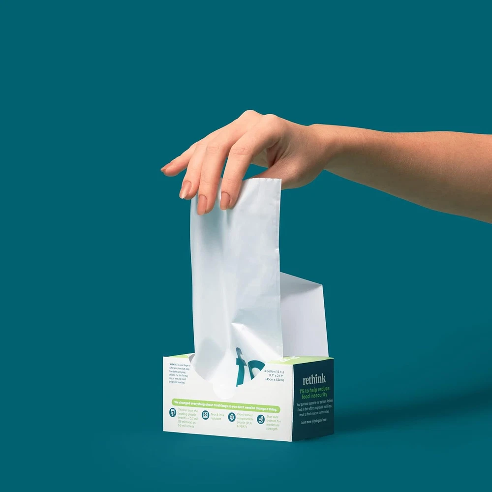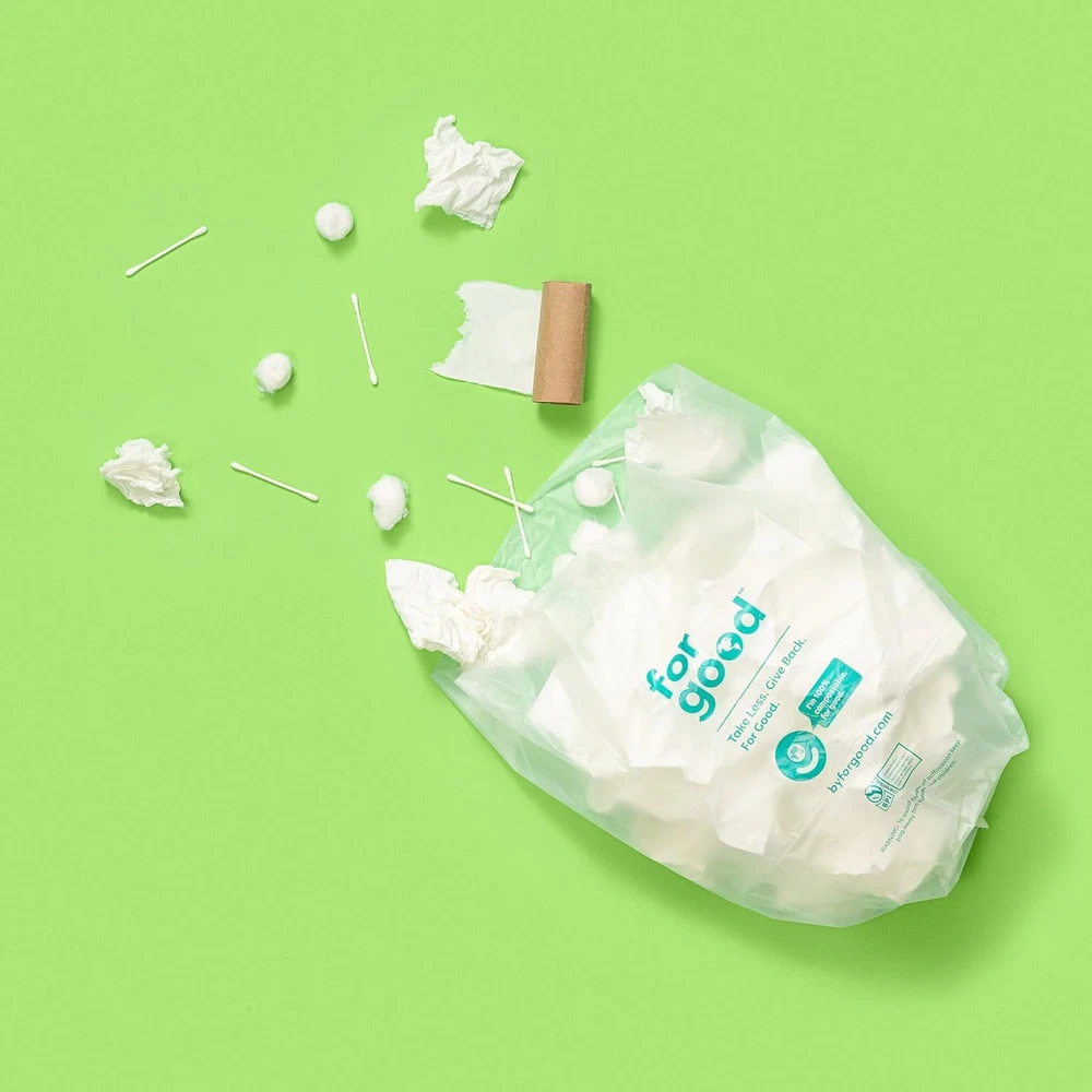 SMALL TRASH BAGS: Plastic stinks, so we’ve made our biodegradable trash bags without it; these compostable bags are ideal for small trash cans in the bathroom, office, kids’ room or laundry room EXTRA STRONG: Our 0.7mm thick trash bags are designed for maximum strength, tear and leak resistance without using plastic; these extra strong bags keep the mess in the liner, not the bottom of the bin 100% COMPOSTABLE: The eco-friendly trash bags are made with plants (PLA & PBAT) that break down into carbon and water, and are certified by BPI to rapidly compost in municipal or commercial composting facilities 4 GALLON TRASH BAGS: These 4 gallon bags are ideal for bathroom and office bins ; each decomposable bag measures 17.7in x 21.7in (45cm x 55cm),; supplied in plastic free, recyclable packaging EARTH FRIENDLY KITCHEN ESSENTIALS: For: good is an all-new family of sustainable, recycled and compostable household staples. Developed by Full Circle, a Certified B Corp. We contribute 1% to the Rethink Food organization 100% COMPOSTABLE TRASH BAGS: Full Circle Small Trash Bags are a high performance, biodegradable alternative to plastic trash bags for the bathroom, office or laundry room can. Made from plant based compostable materials (PLA and PBAT) that break down into carbon and water (and NO microplastics), you can be sure that you won’t be throwing out any extra plastic on garbage day. The extra strong bin liner bags measure 0.7mm thick, and are both leak and tear resistant to minimize mess and spills. Each compostable bin liner is designed to perfectly fit a 4 gallon trash can, and measures 17.7in x 21.7in (45cm x 55cm). These plant based, earth friendly home essentials are supplied as 25 waste bags per box. FOR GOOD: Our biodegradable bin bags are part of an all-new family of sustainable, compostable household staples - trash bags, zipper bags, wraps and other everyday items that turn into earth instead of microplastics. The plant based compostable bags meet internationally-recognized standards to safely compost in municipal or commercial composting facilities, and come in plastic free, recyclable packaging. PLASTIC & CARBON NEUTRAL: Being plastic neutral means that for every ounce of plastic we use, we work with Plastic Bank to recover and recycle the same amount of plastic that would otherwise enter our environment, and through Carbon Fund we’re offsetting all emissions from ocean shipping. FOR GOOD by Full Circle : We make beautifully designed, functionally innovative home care products from safe and sustainable materials to benefit this and future generations, and preserve the world we all share.