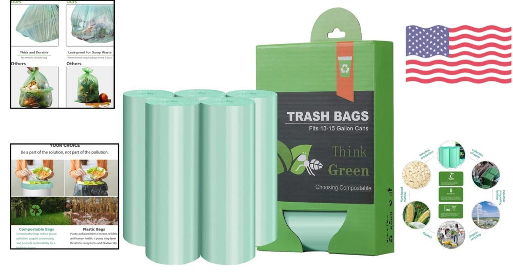 Compostable Trash Bags - 13-15 Gallon Tall Kitchen Bags, Unscented, 60 Count ‹ › ‹ › ‹ › ‹ › ‹ › ‹ › ‹ › ‹ › ‹ › Compostable Trash Bags -13-15 Gallon Tall Kitchen Bags -Unscented -60 Count Features: Made of Plastarch Material(PSM) with ASTM D6866 certificate Measures 23.6 inches x 31.5 inches, 1.18 mil thick Perfect fit for 13-15 gallon trash cans Ideal for kitchen, office, and household use Unscented and odorless Comparable to plastic bags Benefits: Environmentally friendly and compostable Prevents trash can liners from sliding down Controls odor well Identifies contents of garbage for better sorting and recycling Contributes to a cleaner environment and eco-friendly future Why choose our Compostable Trash Bags? Make the switch to our Compostable Trash Bags and help reduce plastic waste in landfills. Our bags are made of sustainable materials and are certified compostable, making them a great choice for environmentally conscious consumers. With a perfect fit for 13-15 gallon trash cans and odor control features, these bags are ideal for kitchen, office, and household use. Choose our compostable trash bags for a cleaner, greener future. Join us in embracing the green life and making the earth better together - order your Compostable Trash Bags today! Shipping Free & Fast Shipping - We offer free shipping to most of the USA with a normal delivery time of 3-7 days. However, due to the current situation, additional delivery time (up to 3 weeks) may be required for some items. Alternative Carriers - We may use alternative carriers (e.g. USPS, FedEx, UPS, etc.) to ensure your package arrives safely and on time. Due to the use of multiple carriers, we are unable to provide a tracking number automatically. Handling Time - Orders are processed and shipped within 1-2 business days of receiving cleared payment. Shipping Restrictions - Shipping to Alaska, Hawaii, Puerto Rico, Guam, and other US territories may incur shipping charges or delivery restrictions. Please contact us before ordering, or your order can be refunded/cancelled. State Restrictions - There may be restrictions based on your state of purchase. For example, certain items may not be shipped to California due to state regulations. Contact for Tracking Updates - If you require tracking updates or have any concerns about the delivery of your order, please feel free to contact us, and we will be happy to assist you. Return 30-Day Hassle-Free Returns - We want you to be completely satisfied with your purchase. If you are not, you can return the item within 30 days of receiving it for a full refund or exchange. Easy Return Process - To start a return, simply contact us and we will provide you with a prepaid return shipping label and detailed instructions. Restocking Fee - There are no restocking fees for returns. However, the buyer is responsible for return shipping costs if the return is not due to a seller's error. Refund Processing Time - Refunds will be processed within 5 business days of receiving the returned item in its original condition. Payment We accept all major credit cards, PayPal, and Apple Pay for your convenience. Your payment information is secure and encrypted to ensure a safe and seamless transaction. Please complete your payment within 3 days of purchase to avoid any delays in shipping. Feedback Your feedback is extremely important to us. We strive to provide the best products and customer service possible. If you are satisfied with your purchase, please take a moment to leave us a positive review. If you have any concerns or issues with your order, please contact us before leaving negative feedback. We are committed to resolving any problems and ensuring your satisfaction. Contact Us If you have any questions or concerns, please feel free to reach out to our customer support team. You can contact us through the eBay messaging system. We are available Monday to Friday, 9:00 am to 5:00 pm EST, and we will do our best to respond to your inquiry within 24 hours. Thank you for supporting our small family business!