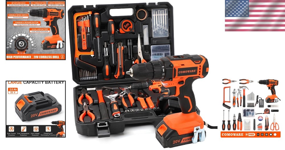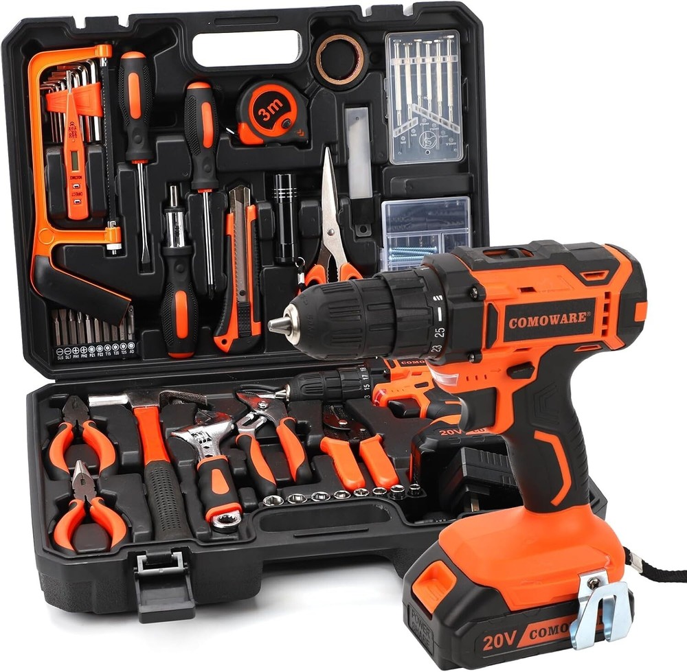 Comprehensive 120-Piece Tool Kit with 20V Power Drill - Ultimate Home Repair Solution for DIY Projects and Maintenance Tasks
