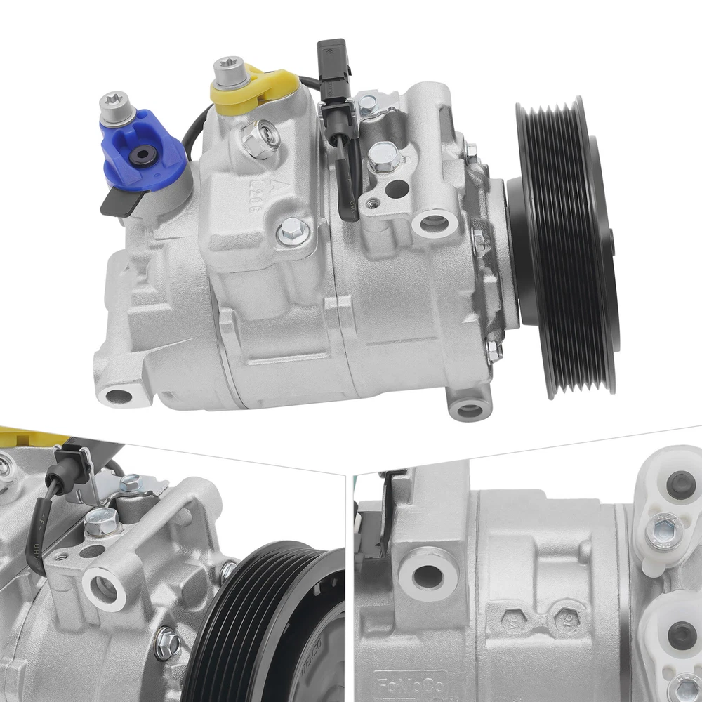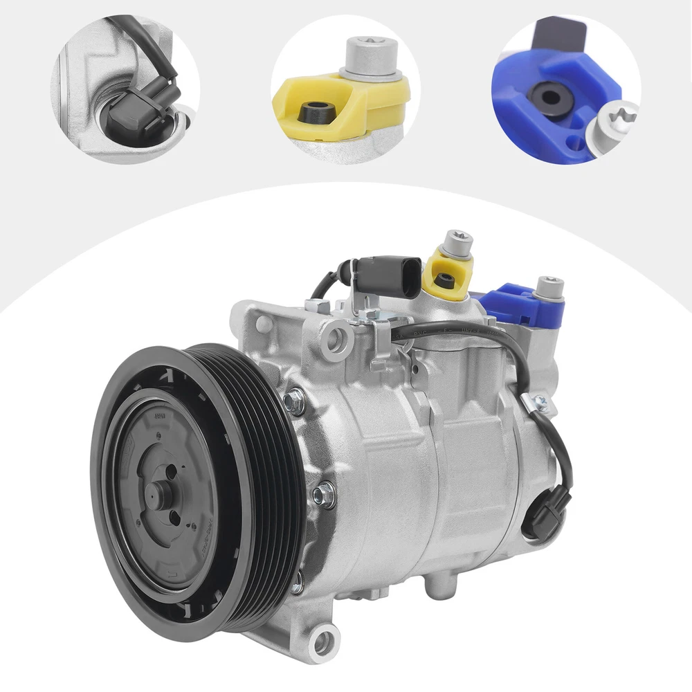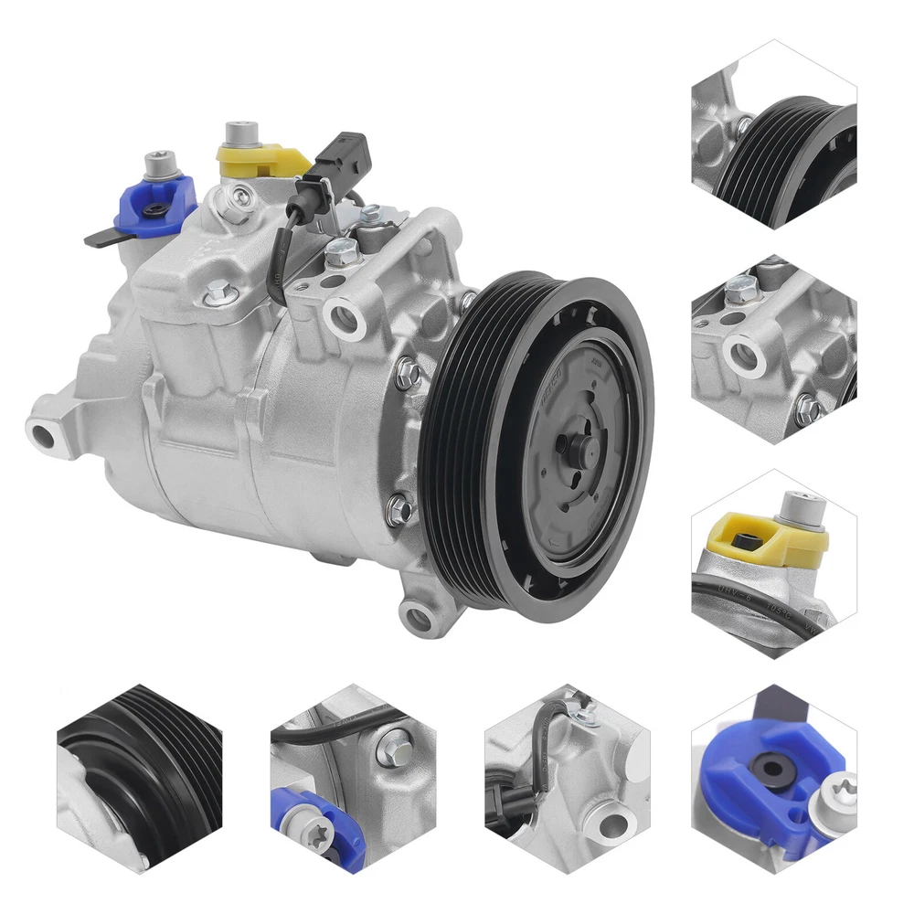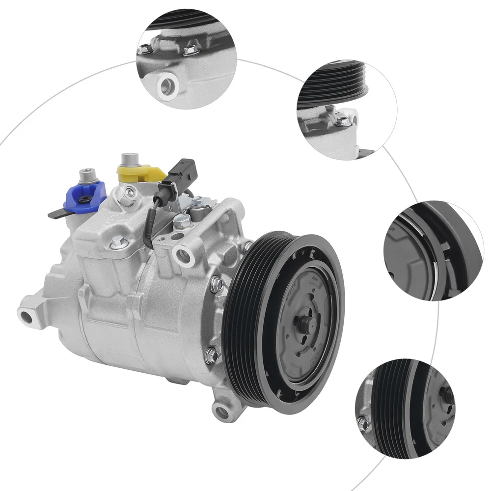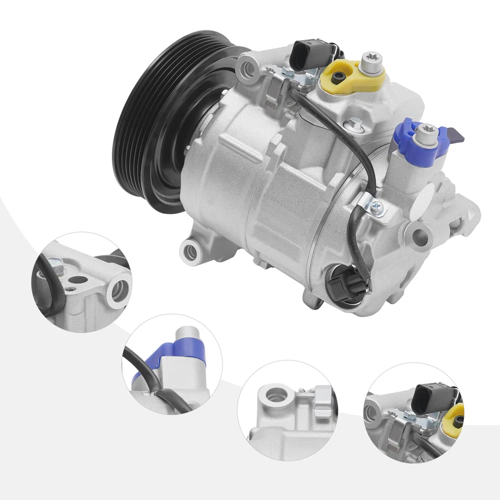 A/C Air Conditioner Compressor w/ Clutch For Audi A6 A7 Q5 S4 S5 2006-2015 3.0L New AC Compressor for AUDI A5, A6, A7, Q5, S4, S5.. - OE# 4F0260805AF Specifications OE/OEM Part Number: 4F0260805AF, 4711503 Compressor Model: DENSO 6SEU14C Type: AC Compressor Condition: New Color: Silver, Black Material: Aluminum, Iron, Copper Applicable Models: 06-15 Audi A6, A7, Q5, S4, S5 Voltage: 12V Grooves: 6 Clutch Diameter: 125mm/4.92in Coil Pos: 12 Compressor Mount: Direct Compressor Fitting: Pad Way of Use: Direct Replacement Placement on Vehicle: Engine Oil Type: PAG 46 Oil: Oz.7 Gross Weight: 6kg/13.23lbs Package Size: 28*22*19cm/11.02*8.66*7.48inch Key Features Improving Cooling Effect: The new AC compressor effectively helps to reduce fuel consumption, and ensure a better cooling effect, providing you with a safe driving experience. Low Noise: It adopts low noise technology, which can effectively reduce noise interference and provide drivers with a quieter and more comfortable driving experience. Protective Packaging: This product comes in custom foam to resist compression and falls, which can prevent product damage in transit as much as possible. Sturdy and Durable: Made of high-quality iron, aluminum, and copper , it can resist wear, corrosion, shock, and deformation, ensuring an extended service life. Highlights Brand New Direct-fit Replacement Comfortable Driving Fast Cooling High Security Easy to Clean Fine Workmanship Long Service Life Notes We strongly recommend professional installation. Please contact us if you have any questions. Please allow the slight color difference caused by the shooting light and 1-3cm error due to manual measurement, and make sure you do not mind before you place the order. Fits (As a Reference) For 06-15 Audi A6, A7, Q5, S4, S5 OE/OEM Part Number: 4F0260805AF, 4711503 Package Included 1 x AC Compressor 1 x English Installation Instruction Automotive Air Conditioning Compressor Disassembly and Assembling Steps 1. Preparation Before you start to disassemble the automobile air conditioning compressor, you need to do the following preparatory work. 1. Make sure the car has been parked and completely turned off. 2. The vehicle should be in a flat and safe environment, avoiding operation on slopes or unstable ground. 3. Wear acid and alkali-resistant gloves and goggles for protection. 4.When you receive this compressor item, please first check if there is any damage to the compressor, and then manually rotate the wheels and suction blades to see if there are any abnormalities. Furthermore, please confirm if the 12V plug of the power clutch is properly powered on 2.Disassemble the air conditioning compressor 2.1 Compressor location determination Before removing the air conditioning compressor, its location needs to be determined. Typically, the air conditioning compressor is located at the front of the engine compartment, and its exact location can be found through the technical manual provided by the vehicle manufacturer or online resources. 2.2 Discharging the refrigerant Before removing the air conditioning compressor, the refrigerant in it must be drained. This is very important as refrigerants can be harmful to the environment and illegal. The following are the steps for discharging the refrigerant. 1. Open the hood of the vehicle. 2. Locate the refrigerant charging and discharging ports on the air conditioning compressor. 3. Use a refrigerant recovery machine to pump out the refrigerant and store it. Be sure to follow local regulations to ensure proper handling of the refrigerant. 2.3 Removing the connecting piping After discharging the refrigerant, it is necessary to remove the connection pipes on the air conditioning compressor. These pipes are usually bolted or clamped to the compressor. The following are the steps for removing the connecting pipes. 1. Loosen the bolts or pliers on the connecting pipes with the appropriate tools. 2. Carefully separate the connecting pipe from the compressor. It may be necessary to shake the connection pipes gently to loosen them. 2.4 Removing the electrical connections After removing the connecting pipes, it is necessary to remove the electrical connections on the compressor. These electrical connections are usually secured to the compressor by plugs or screws. The following are the steps for removing the electrical connections. 1. Locate the electrical connections on the compressor. 2. If there is a plug connection, carefully unplug it from the compressor. 3. If there is a screw connection, use the appropriate tool to loosen the screw and remove the wire. 2.5 Removing the compressor After completing the above steps, the entire air conditioning compressor can now be removed. The following are the steps for removing the compressor. 1. Remove the bolts or screws holding the compressor in place using a wrench or wrench glove device. 2. Carefully remove the compressor from its mounting position. 3.Installation of a new air-conditioning compressor 3.1 Preparation for installing a new compressor Before installing a new air conditioning compressor, some parts need to be prepared. The following are the steps of preparation. 1. Clean the joints of the connecting pipes and make sure that their surfaces are clean and dust-free. 2. Prepare the new compressor and make sure it fits your vehicle model and cooling system. 3. Prepare new washers, bolts, or screws to fix the new compressor. 3.2 Installing the air conditioning compressor The following are the steps for installing a new air conditioning compressor. 1. Carefully place the new compressor in its mounting position. 2. Use new bolts or screws and place washers in the necessary positions before installation. 3. Tighten the compressor bolts or screws using a wrench or wrench-glove device. 3.3 Connecting the wires The following are the steps for connecting the wires. 1. Connect the compressor wires to the new compressor. Depending on the disassembly procedure in the previous section,