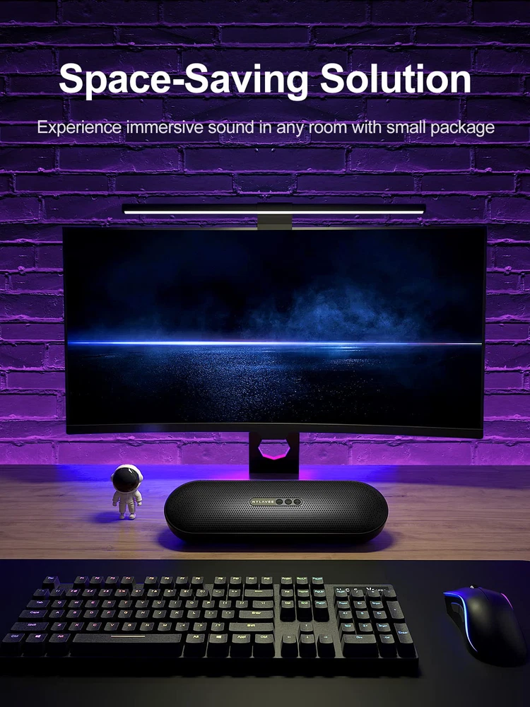 Double the Speaker Power: A new level of audio performance with our computer speaker's dual-sized speakers, delivering double the size and power for a truly impactful sound experience. Precision Audio Projection: Precise and clear sound projection with our pc speaker's carefully crafted 30-degree beveled design, enhancing your audio enjoyment. Space-Saving Design: Mini computer sound bar is compact and sleek, perfect for small spaces, saving you valuable desk or countertop space. Universal Connectivity: Desktop soundbar's AUX 3.5mm and USB power options make it universally compatible with a wide range of devices, ensuring seamless connectivity and stable audio output for a hassle-free audio experience. Simple Operation: Button controls provide a streamlined and straightforward way to operate the device, making it easy to adjust settings and enjoy your music, movies, and games without any hassle or confusion.