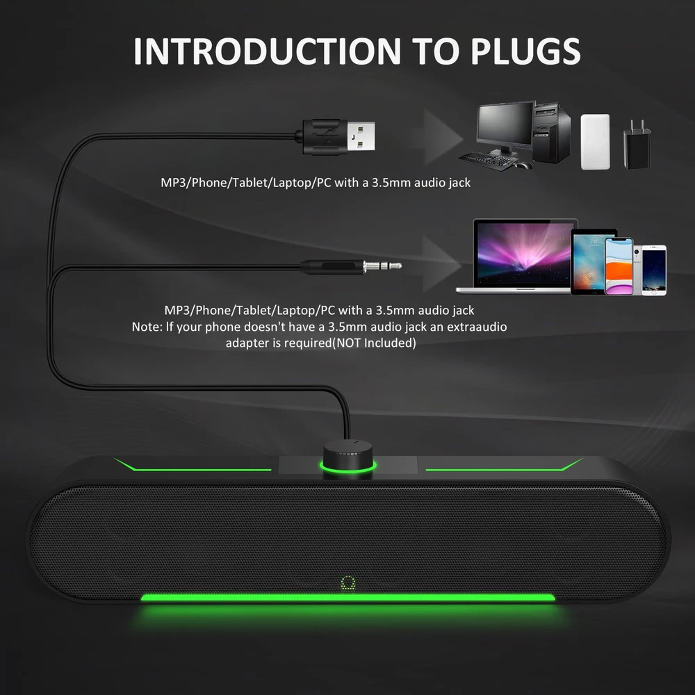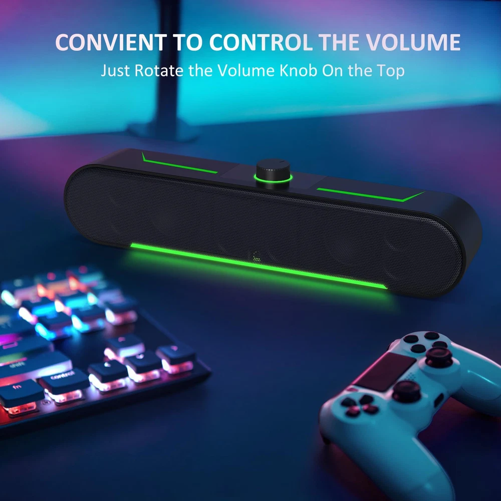 Compatibility with Multiple Devices: The A01 computer speakers are compatible with various devices, including personal computers, laptops, and tablets, that have a standard 3.5mm headphone jack. You don't have to worry about connectivity issues as they come with a convenient 3.5mm AUX headphone plug and jack. Clear Stereo and Noise-Free Sound: With upgraded 2x5W technology, the A01 PC speakers deliver clear and pristine sound. Whether you're enjoying indoor movies, videos, music, or games, these speakers provide an excellent auditory experience. Convenient Volume Control: The volume knob of the A01 PC speakers is located on the top for easy and quick volume adjustments. No more hassle of searching for volume buttons; you can effortlessly enjoy precise control over the audio. Colorful Breathing Light Design: The A01 speakers come with a stunning breathing light effect that creates a pleasant ambiance in your home, office, or workplace. You can easily turn on or off the lights through simple control buttons, allowing music to dance with the lights. Plug and Play Convenience: These computer speakers require no drivers or concerns about sound delays. They feature a 3.5mm audio interface compatible with desktop computers, PCs, laptops, iMacs, Macs, tablets, smartphones, MP3 players, and other devices. With a 1.4-meter cable, they provide ample length to connect to your various devices. If you need further volume adjustments, simply click on the speaker icon in the system tray to adjust the volume settings on your computer.