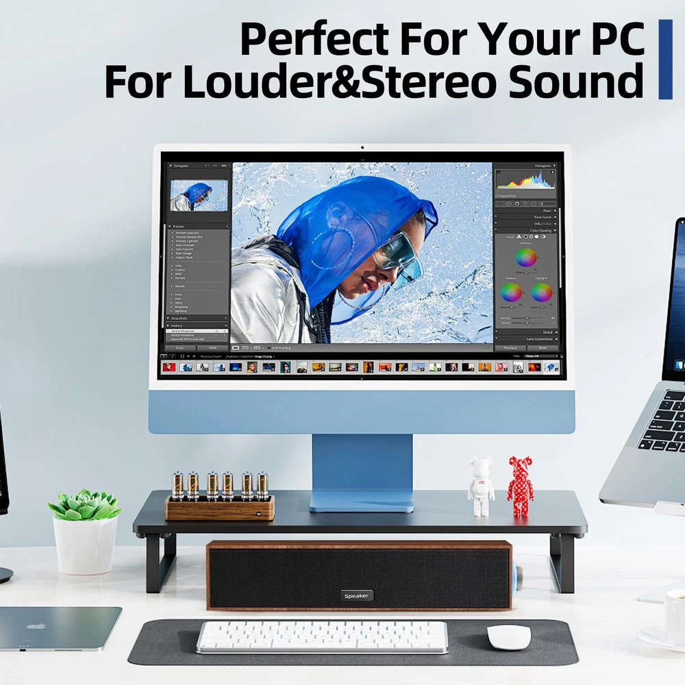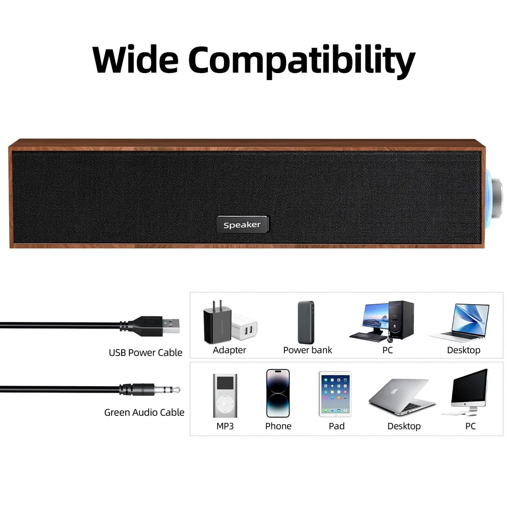 ♪【Fashion Wooden Design for Home】Using a unique oak-made speaker cabinet, and deluxe rewind fabric covering, The body has a classic color & vintage look, which makes it an indispensable interior decoration for room decoration. Perfect for cafes, restaurants, vintage cloth stores, and dance studios, it integrates perfectly into your room and seamlessly matches the texture of wooden furniture, reflecting the far-reaching influence of classic aesthetics. ♪【Plug and Play】USB powered-Our speakers for gaming monitor are designed for your ease and convenience. Enjoy Plug and Play functionality without the need for any drivers- just plug in the USB powered cable and the 3.5mm audio cable to start enjoying your audio! ♪【High-Quality Audio Performance】Good sound quality With 2*3W speakers, deliver clear and stereo sound in wide pitch range enables you to enjoy music, movies or gaming at home or any other small places. ♪【Wide Compatibility】USB Powerd speakers, compatible with all Multimedia devices with 3.5mm Earphone Jack including PC/ laptops/ smartphones/ tablets/ projectors/ MP3 player/ CD/ DVD players. ♪【What You Get】1 x Wooden Multimedia Digital Speaker, 1 x User Manual, 30-Day money-back guarantee, 18-Month worry-free warranty and life-time free user support.