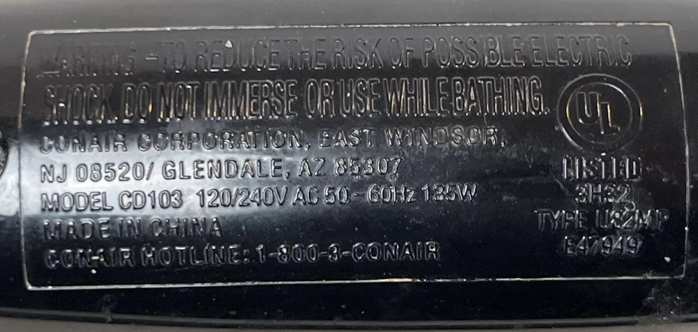 Curling Iron Hair Curler Conair 1-1/2" Barrel Model CD103