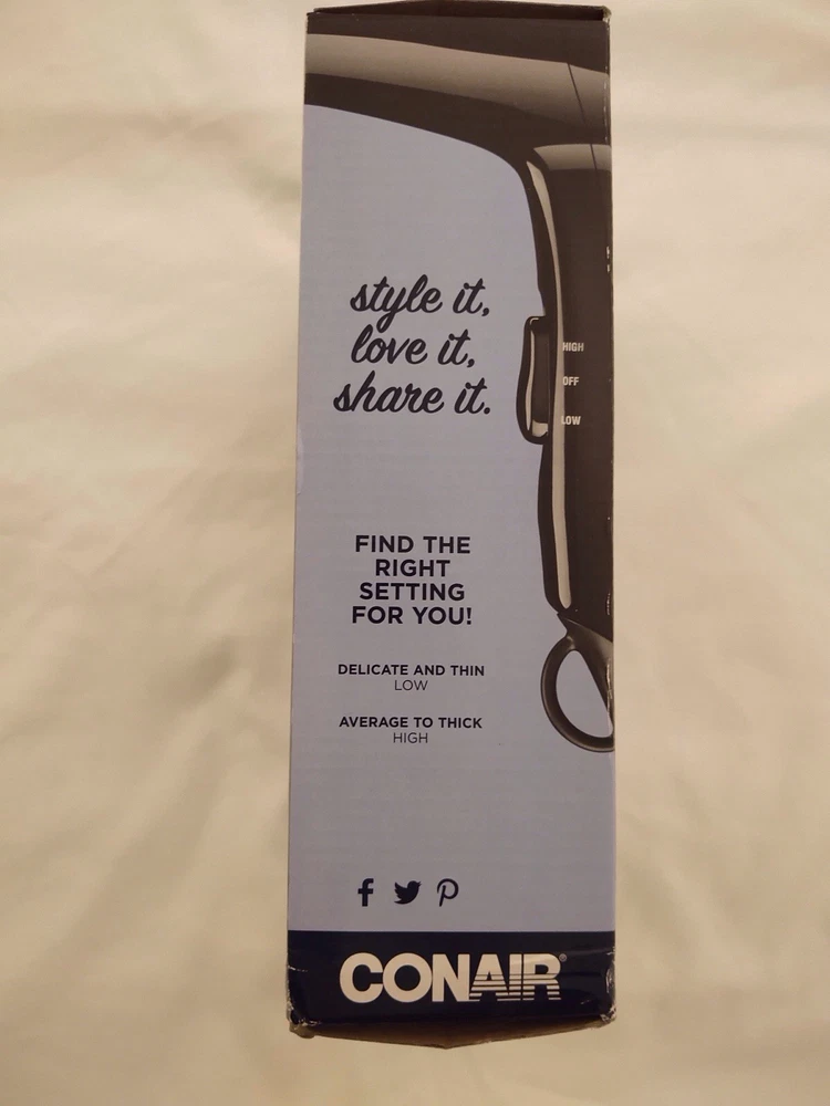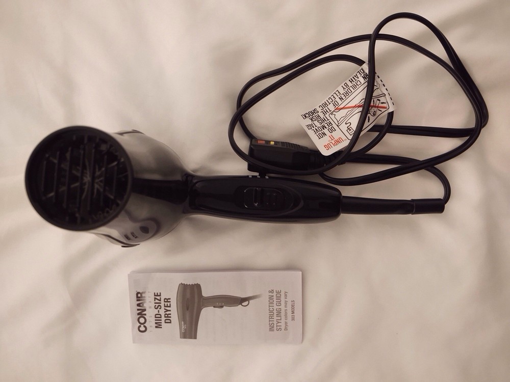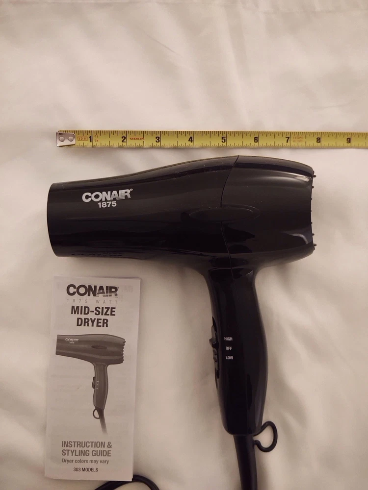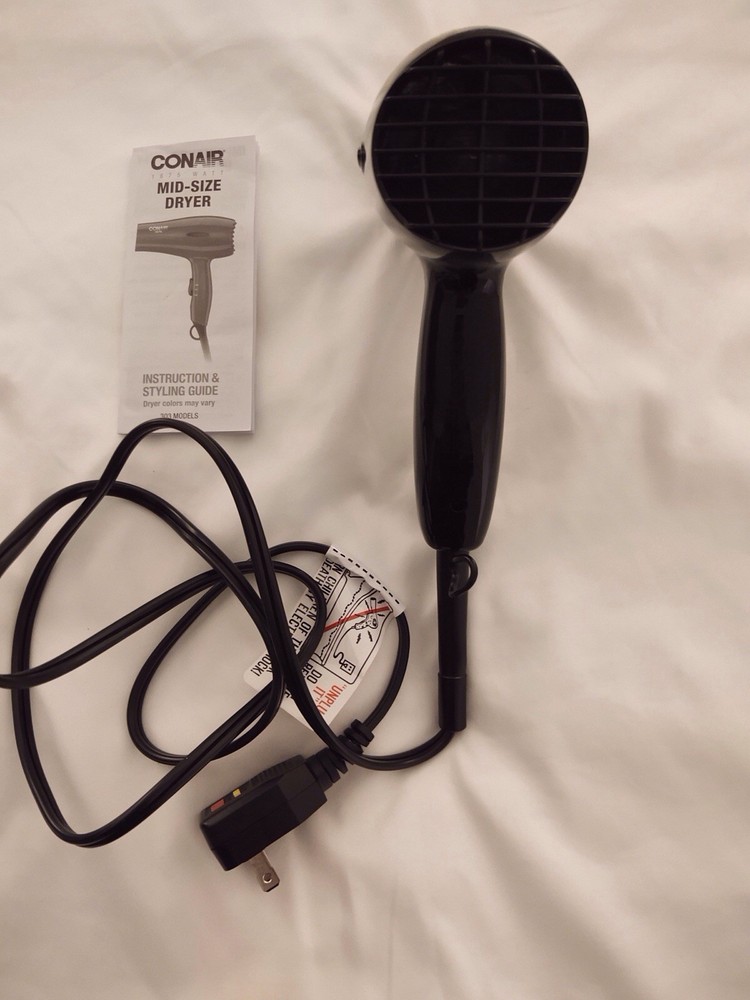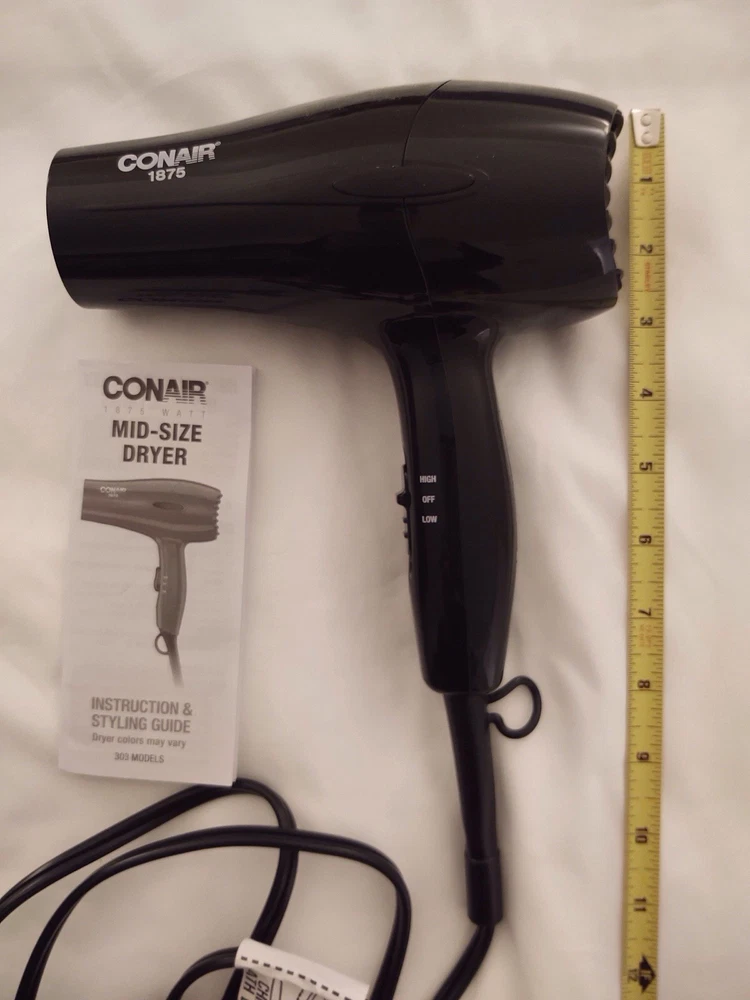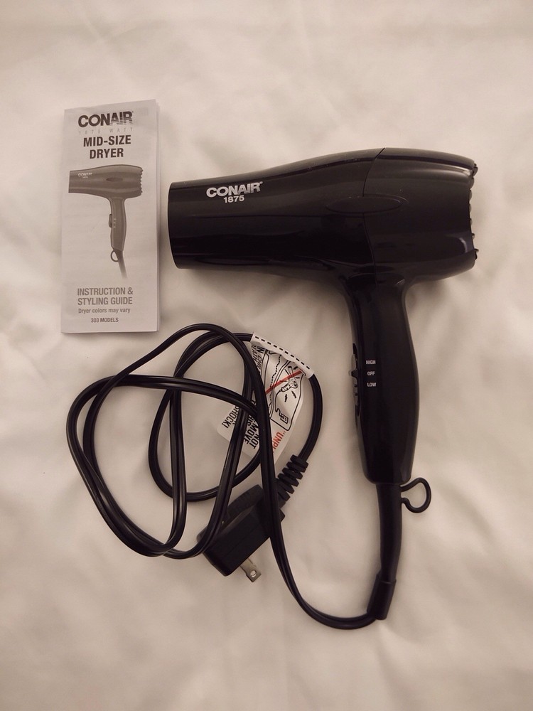 Conair 1875 Mid-Sized Hair Dryer Black Ergonomic Handle 2 Speed 2 Heat Setting Used in excellent condition Tested Works