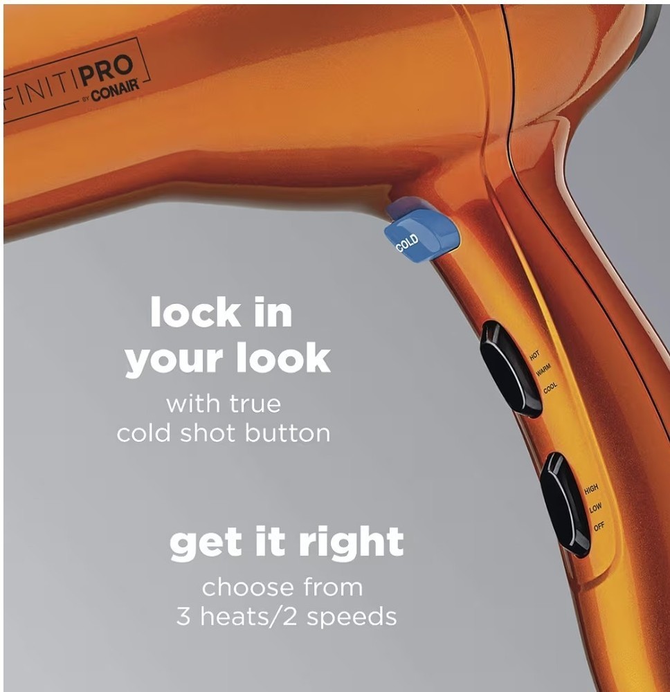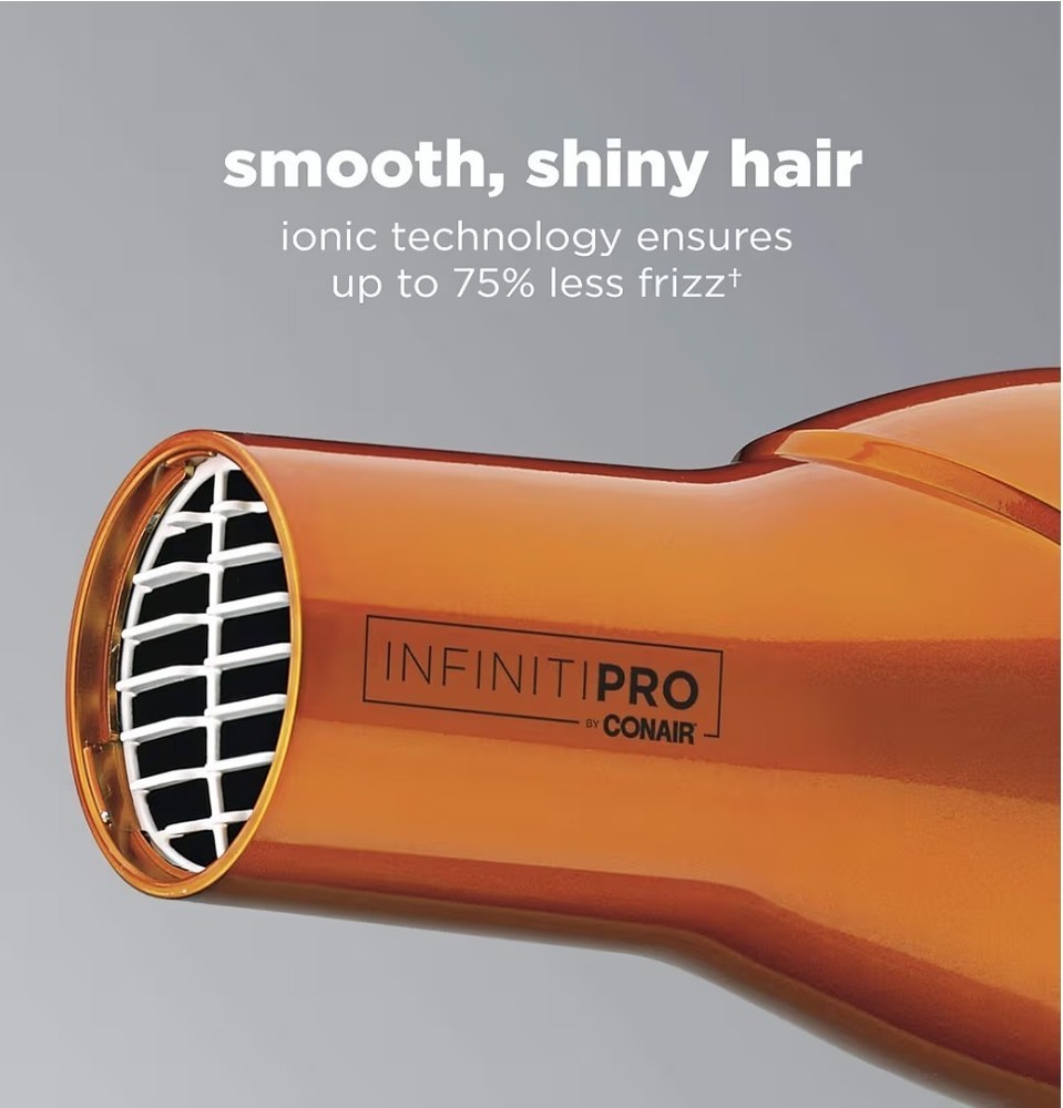 The Conair Infiniti Pro Hair Dryer is a high-quality standard hair dryer designed for both men and women. With its stylish orange color and cool tip feature, this electric-powered dryer offers adjustable heat settings and two speeds for customizable styling options. The built-in diffuser and ionic technology allow for sleek and salon-quality results, making it a must-have for anyone looking to achieve professional-looking hair at home. Made of durable plastic, this Conair hair dryer is a reliable and efficient styling tool for achieving perfect locks every time.