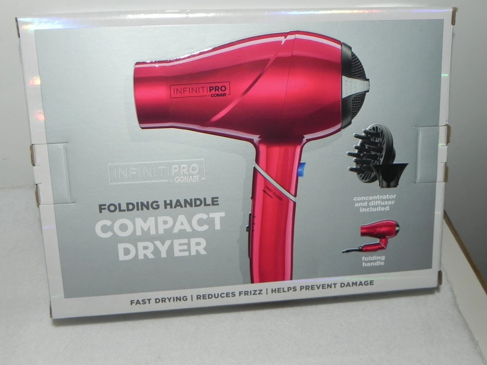 Conair Infinity Pro Folding handle Compact Dryer Concentrator/Diffuser included 1875 watt Shipping is $4.95 NO Returns .. Please email me with any questions After you leave me feedback, I will leave yours.. Thank you Rack 3