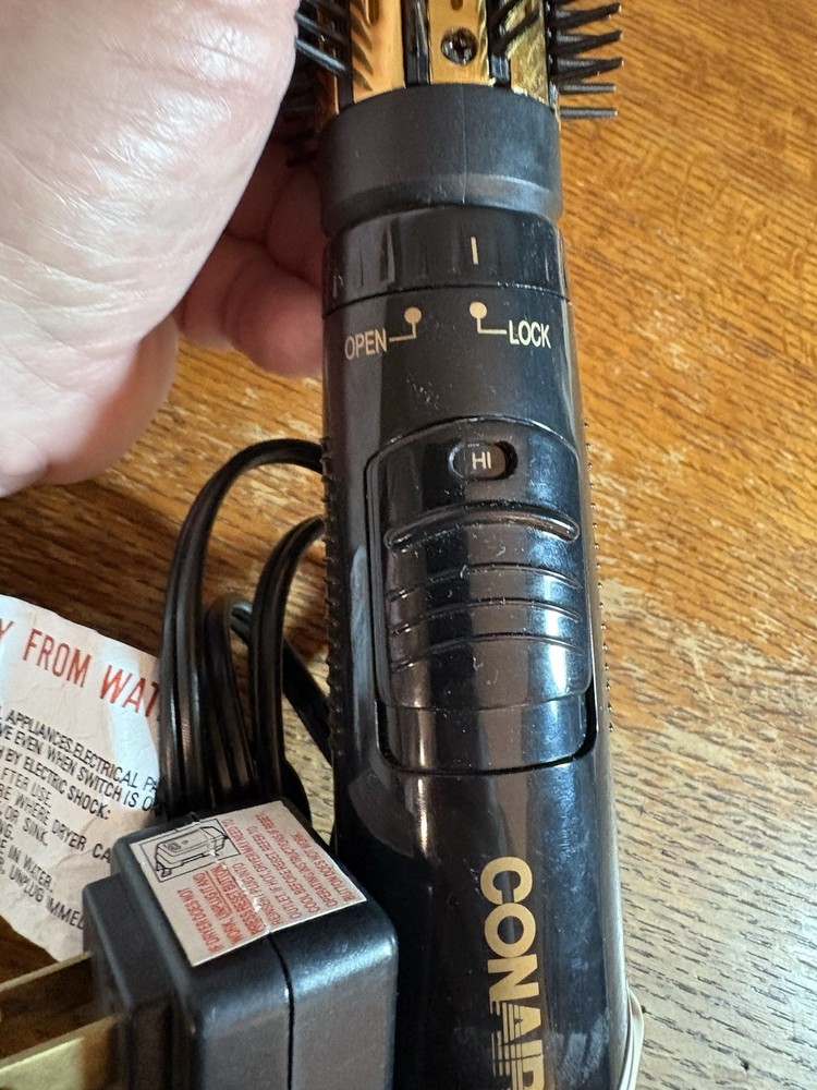 Conair Hot Air 1 1/2’’ Jumbo Hot Curling Iron ( Works Great ). Has one broken tooth on comb. Remotes