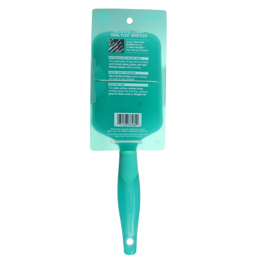 Product Description Unique Two-Level Bristles that are 7x More Flexible ** than Standard Bristles. Detangles wet or dry hair. The Combination of high and low bristles gently brush above, below, and right through tangles without pulling. Super-comfy brushing. Ultra flexible bristles gently massage the scalp as they detangle. Everyday use. This wide-surface cushion brush provides stress-free brushing, making it great for thick, curly or straight hair. **Versus Conair Velvet touch Brush line Unique Two-Level Bristles that are 7x More Flexible ** than Standard Bristles. Detangles wet or dry hair. The Combination of high and low bristles gently brush above, below, and right through tangles without pulling. Super-comfy brushing. Ultra flexible bristles gently massage the scalp as they detangle. Everyday use. This wide-surface cushion brush provides stress-free brushing, making it great for thick, curly or straight hair. Product Description Unique Two-Level Bristles that are 7x More Flexible ** than Standard Bristles. Detangles wet or dry hair. The Combination of high and low bristles gently brush above, below, and right through tangles without pulling. Super-comfy brushing. Ultra flexible bristles gently massage the scalp as they detangle. Everyday use. This wide-surface cushion brush provides stress-free brushing, making it great for thick, curly or straight hair. **Versus Conair Velvet touch Brush line Unique Two-Level Bristles that are 7x More Flexible ** than Standard Bristles. Detangles wet or dry hair. The Combination of high and low bristles gently brush above, below, and right through tangles without pulling. Super-comfy brushing. Ultra flexible bristles gently massage the scalp as they detangle. Everyday use. This wide-surface cushion brush provides stress-free brushing, making it great for thick, curly or straight hair. Disclaimer The product descriptions and instructions provided by Vitabox are for informational purposes only and are qualified in their entirety by the information available from manufacturers of the products. You should carefully read all product packaging, and contact the manufacturer with any questions before using a product. While we endeavor to ensure that product descriptions are current, manufacturers sometimes change their products. We are not liable for inaccuracies or misstatements about products. We do not provide medical advice or recommendations. You should not use the information provided by Vitabox for diagnosing or treating a health problem or disease. If you have or suspect that you have a medical problem, immediately contact your health care provider. Information and statements regarding dietary supplements have not been evaluated by the Food and Drug Administration or any other government agency and are not intended to diagnose, treat, cure, or prevent any disease.