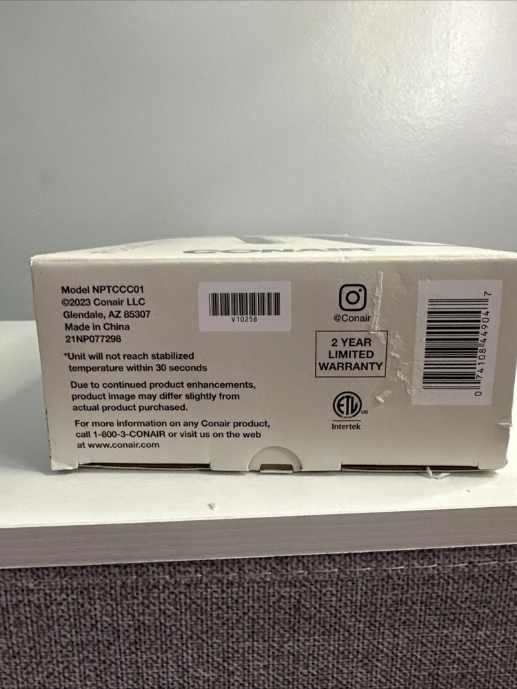 Barrel Size: 1/2'', 1'' &1 1/4'' Number of Temperature Settings: 3 Hair Type: Curly Hair, Wavy Hair, Coily Hair Power Source: Electric Color: Black Maximum Temperature: 425 Department: Women Power: 110W Size: Travel Size Material: Ceramic Features: Auto Shut-Off, Textured targeted heat range, Heat resistant glove included Heating Plate Material: Ceramic Brand: Conair Model: NPTCCC01 Type: Hair Irons and Curlers