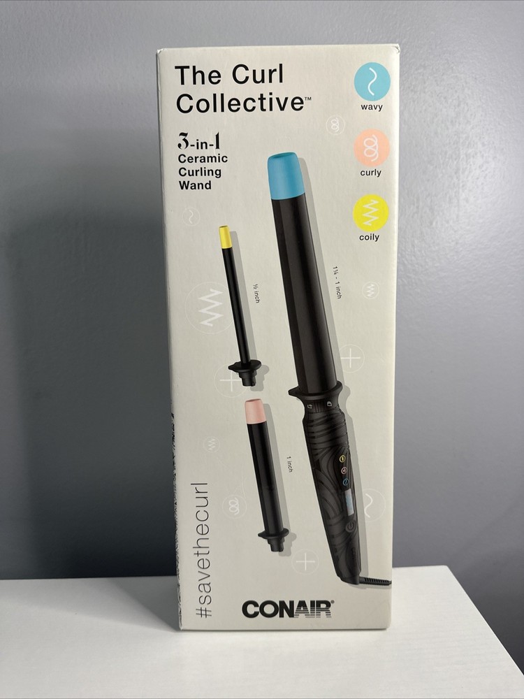 Conair The Curl Collective 3 in 1 Ceramic Curling Wand, Black - New In Box