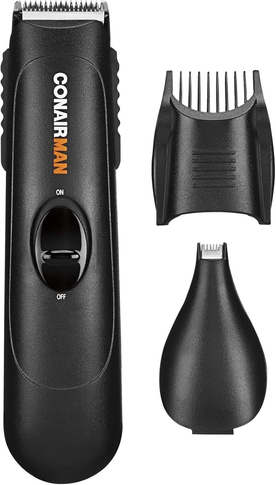 Store New Arrivals Add to Favorite View Feedback Contact Conairman Beard Trimmer for Men, Includes Nose and Ear Trimmer and 5-Position Comb Attachments, 3 Piece Men'S Grooming Kit, Battery Operated Description Item model number GMT100R Color Black Product Dimensions 5.9 x 1.8 x 1.6 inches; 4.22 ounces Country of Origin China Hair Type All Item Weight 0.26 Pounds Recommended Uses For Product Mustache,Nose,Beard,Trimming,Grooming Manufacturer Conair Is Discontinued By Manufacturer No Brand Conair Size 1 Count (Pack of 1) Cordless Beard and Mustache Trimmer: A man's face is his statement and whether you're going bold look or staying subdued this battery operated men's trimmer has all the basics to give you a clean, comfortable shave Portable and Powerful: This cordless electric shaver features a stainless steel removable blade for easy cleaning and includes a nose trimmer attachment and 5 position adjustable comb for custom trims; Batteries not included Respect The Ritual: Don't crack under the pressure to look good; ConairMAN has beard trimmers, home barbering kits, electric shavers and more for precision cuts and trims so you can get your look right Innovative Grooming Tools: From hair and beard clippers to trimmers, shavers, epilators and home haircut kits; Conair makes high quality grooming tools for men and women Personal Care from Conair: Our personal care line includes high quality skincare tools, lighted mirrors, haircut kits, beard and mustache trimmers and ear/nose trimmers, ladies shavers and oral care; Conair makes personal care tools for your daily routine A man's face is his statement. Sometimes bold, sometimes subdued, always individual. The ConairMAN Beard & Mustache Trimmer- Battery Operated has a 5-Position taper cutting comb, a men’s nose trimmer and men’s ear trimmer attachment. The 5-Position adjustable comb makes beard trimming and mustache trimming customizable and convenient. The sharp stainless steel blades are removable, making them easy-to-clean. This trimmer for men is battery operated (2 AA batteries required, not included), making it easy to transport. ConairMAN: Respect the Ritual. ABOUT US We offer the best prices around on high quality products. Our E-store includes media such as books, movies, music and games while offering electronics, toys, sporting apparel, clothing, tools, general home, garden items and more. SHIPPING We are always working hard to ensure your package arrives as soon as possible. Please understand that some factors like weather, high postal traffic, and the performance of shipping companies are outside of our control. We offer free shipping to the lower 48 states and ship within 2 business days of payment, usually sooner. We do not accept P.O. Boxes. Please provide a physical address. RETURNS We offer a 30-Day Return Policy on items which you are not completely satisfied with. You have the option for a full-refund or an exchange of the item. No returns are available on items shipped outside of the USA. PAYMENT We accept PayPal. CONTACT US This page content is yet to come Please ad us to your favorite seller and visit again later Thank You CUSTOMER SATISFACTION We try our very best to make sure every customer is completely satisfied. If there's a problem, message us! We're happy to help.