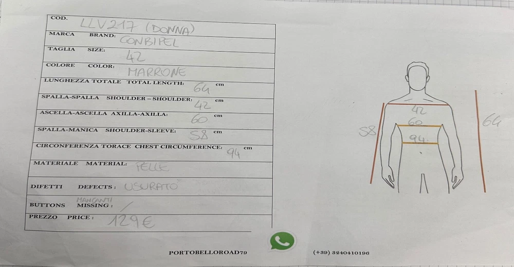 Type:JacketBrand:ConbipelOuter Shell Material:LeatherColor:Browngtin13:Does not applyClosure:ButtonSize:42UPC:Does not applyVintage:YesDepartment:womanSize Type:RegularStyle:Jacket