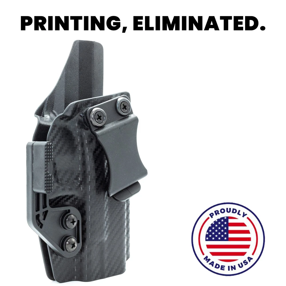 Eliminates Printing of Your CCW: Say goodbye to printing forever with our inside-the-waistband and tuckable claw kit; our gun holster claw attachment angles the butt of your gun in towards your body to eliminate any printing, giving you maximum concealability with your concealed carry weapon Precision Craftsmanship: 100% made in the USA, our holster claws are formed over our proprietary, precision aluminum molds; CAD-designed and milled in house, we ensure top quality, durability and fit for every claw we make Custom Design & Fit: Built to fit your Concealment Express holster, our claw accessory can be installed in seconds; it works with both right and left handed IWB & tuckable holsters with double hole retention (with .60” spacing). The Claw is built for Rounded by Concealment Express holsters and may not be compatible with other holster brands. All the Hardware You Need: This concealment claw kit includes 1 reversible claw base, 1 short claw standoff, 1 tall claw standoff, 1 flat screw, 1 nut, 4 rubber spacers, 2 short pan head screws and 2 long pan head screws