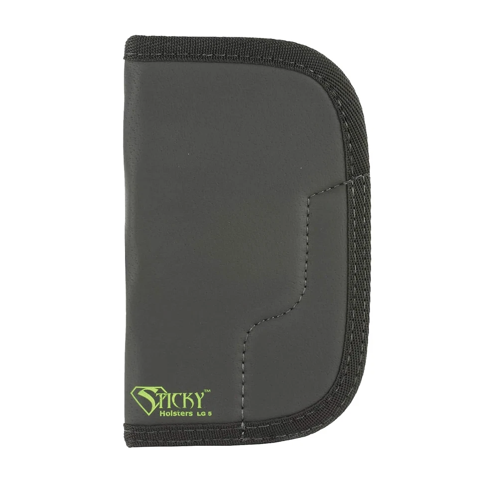 What is a Sticky Holster? Since our inception, we have developed these holsters into a modular system, where you can use them IWB, in your pocket, on your ankle using our ankle rig, and for police officers, on your tactical/armored vest, etc. They don't come with clips or loops to secure them in place, as the outer "sticky" skin adheres to your waistband, undergarments and/or your skin. The outside skin is a super non-slip material that, with a little pressure, adheres to just about anything. That outer material combined with the inner closed-cell foam and the inner liner keeps your and the holster securely in place. In the pocket, it works like any other pocket holster. However, when you pull the , the outer layer grabs the inside of your pocket. Our modular products use the same "sticky" material against itself to hold the holster and in place. In addition, with use and body heat, your Sticky Holster will conform to your particular , making a custom fit. LG-5 LARGE is designed for large/long revolvers up to 4” barrel. It has an ambidextrous fit for both right and left-handed users. LG- 5 LARGE fits the Following : *Taurus Judge 45COLT 3 *Taurus Tracker 44MAG 4 *Taurus Tracker 357MAG 4 *Taurus Ultralite 44MAG 4 , Inc. stands by the quality of our holsters and accessories, which are 100% made in the USA. This IWB pouch features a high-performance, non-slip material that cleaves firmly to your skin and clothing, allowing it to stay in place reliably, even in dynamic situations. Furthermore, the inner layer is made of closed-cell foam that provides a snug fit that keeps your firmly in place. The LG-5 Large is designed to fit large/long revolvers, SAR .357, Taurus Tracker (large), Taurus Ultralite, and similar up to 4" barrels. It has an ambidextrous design that caters seamlessly to both left-handed and right-handed users, allowing for an effortless draw, regardless of your dominant hand. The concealment holster for pistols offers the ideal solution for discreetly carrying your sidearm, whether inside the waistband or in your pockets. Its unique design allows you to carry your effortlessly in a variety of clothing such as sweatpants, yoga pants, jeans, or virtually any apparel, with minimal printing and no bulky feeling. Say farewell to clips and loops. The revolutionary design of the LG-5 Large ensures that nothing gets in your way when drawing your firearm conveniently, especially in the most crucial situations. You can be confident that your holster stays in place with its non-slip material that adheres to your waistband, undergarments, or your skin. , Inc. stands behind the craftsmanship of our premium products. Every aspect of our products, from design to manufacturing, is handled with great attention to detail, ensuring the highest standards of quality. We take pride in the fact that all our products are proudly made in the USA, a testament to our commitment to supporting local craftsmanship and delivering durable products to our valued customers.