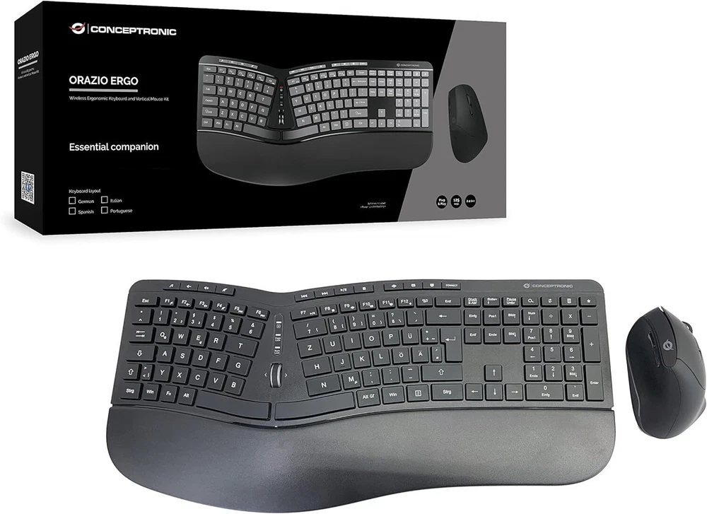 Conceptronic ORAZIO02DE Ergo Wireless Ergonomic Keyboard and Vertical Mouse Set