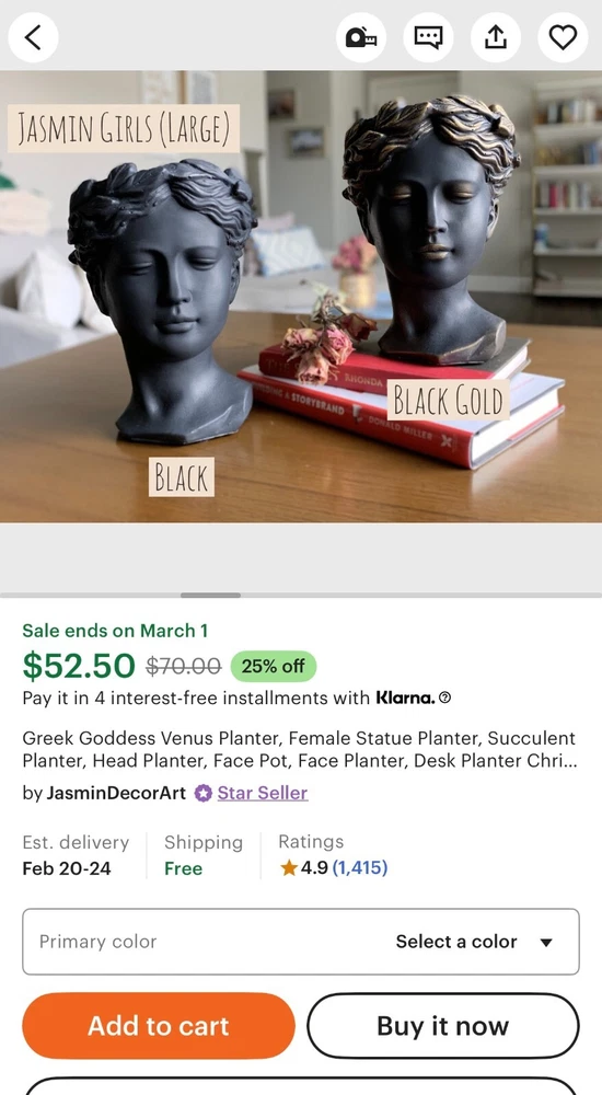 Absolutely love this elegant Venus planter—the antique black finish gives it a timeless, museum-quality look while still being perfect for small succulents or herbs. The detailed craftsmanship makes it a standout decor piece, and the matching medallion adds a chic modern touch. Great size for shelves or tabletops, and the handmade quality feels worth every penny. A beautiful blend of art and function!