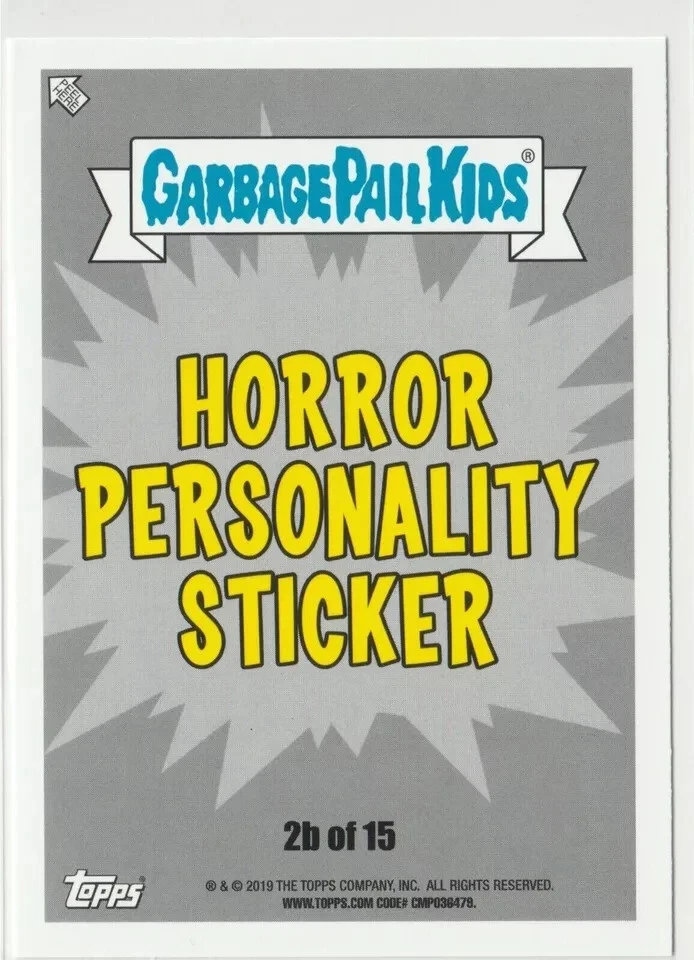 Autographed: No Type: Non-Sport Trading Card Card Size: Standard Original/Licensed Reprint: Original Card Type: trading card sticker Features: Base Set, Sticker Series: 2019 Revenge of Oh, the Horror-ible! ROTH Country/Region of Manufacture: United States Mononym: overourheads Related ID: overourheadz Vintage: No Subset: Horror Personality Sticker Year Manufactured: 2019 Store ID: American Pop Cult Manufacturer: Topps Genre: Comedy, Horror, Parody, Satire, Sci-Fi Language: English Set: Oh, The Horror-ible Material: Card Stock Franchise: Garbage Pail Kids