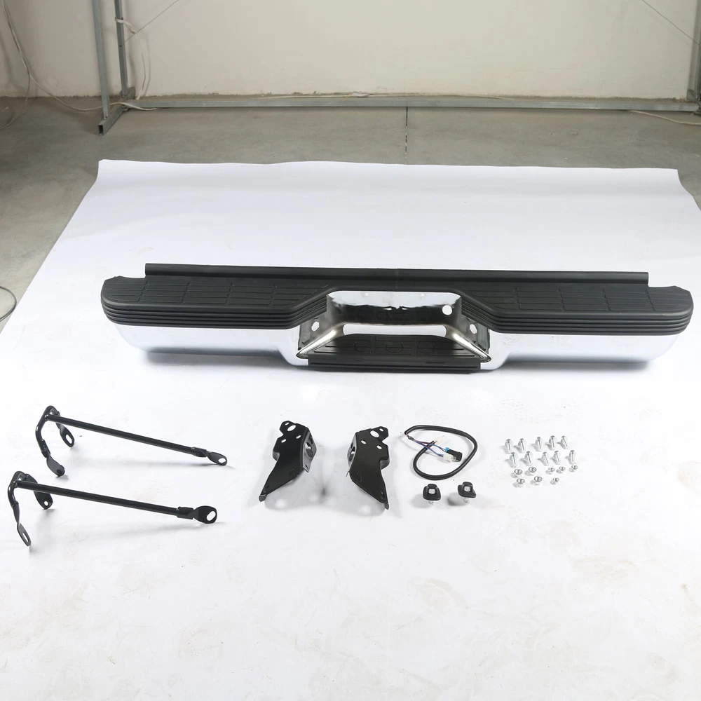 Compatible With: - For 1993 - 1999 Chevy Suburban 1500/Tahoe - For 1993 - 1999 GMC Yukon/Suburban Type:Rear Bumper Color:Silver Finish:Chrome Material:Steel Fitment Type:Direct Replacement Hardware Included:Yes Includes:- 1×Rear Bumper - 1×Pair of License Plate Light - 2×Brackets - 1×Bag of Bolts On Jun 13, 2024 at 20:21:12 PDT, seller added the following information: On Jun 15, 2024 at 14:03:58 PDT, seller added the following information: On Dec 3, 2024 at 12:35:32 PST, seller added the following information: