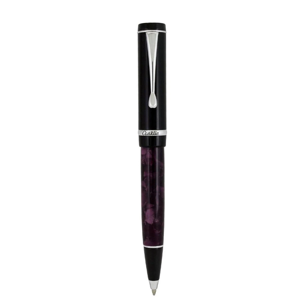 The Conklin Duragraph Ballpoint Pen in Purple Nights is a sophisticated writing instrument and a luxury gift that is sure to impress. The Conklin Pen Company®, established in 1898, revolutionized the pen industry with the Duragraph™ in 1923. Known as 'the definitive' pen, the Duragraph™ was built to be both durable and stylish. This Purple Nights edition is crafted from high-quality European-grade resins, featuring a deep purple finish with shimmering pearlescent details. The pen’s substantial size offers a comfortable and balanced grip, making it suitable for both professional and creative writing tasks. Packaged in a luxurious gift box, the Conklin Duragraph Ballpoint Pen in Purple Nights is the perfect gift for pen enthusiasts, collectors, and executives. Whether it’s for a special occasion or simply to show appreciation, this high-quality gift will be cherished by anyone who values elegance and craftsmanship in their writing tools. Conklin Pen Company – A Legacy of Craftsmanship: Since 1898, Conklin has been known for its luxury writing instruments. The Purple Nights Duragraph Ballpoint Pen reflects this tradition, making it an elegant gift for those who value quality and style. Deep Purple Nights Finish: The pen’s rich, deep purple body, crafted from premium European-grade resins, features shimmering pearlescent details, making it a sophisticated gift for any occasion. Smooth Twist-Action Writing: The pen’s twist-action mechanism ensures effortless, reliable writing, perfect for both professional and personal tasks, making it an ideal gift. Refillable with Parker-Style Refills: The pen is compatible with Monteverde, Schmidt, or any Parker-style ballpoint refill, ensuring long-lasting use and convenience—great for gifting to professionals and enthusiasts alike. Luxury Gift Presentation: Packaged in a luxury gift box, the Conklin Duragraph Ballpoint Pen in Purple Nights is the perfect gift for pen enthusiasts, collectors, and anyone who appreciates the finer things in life.