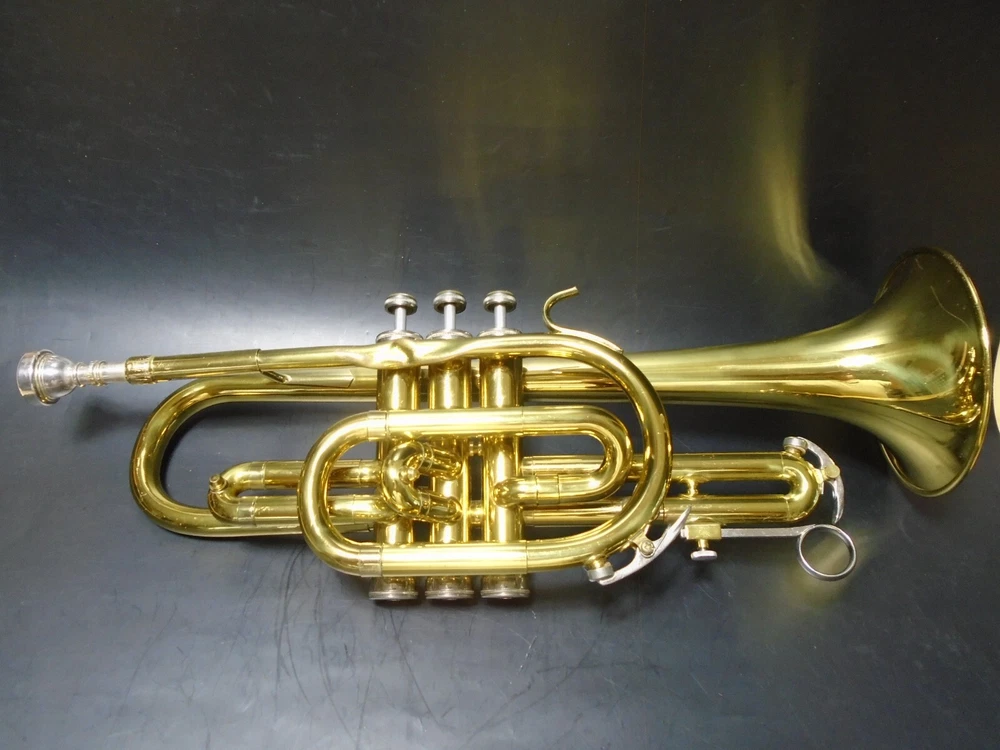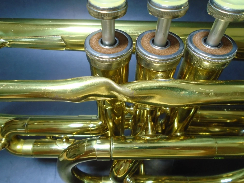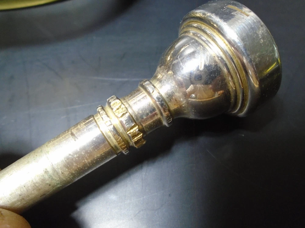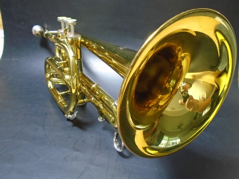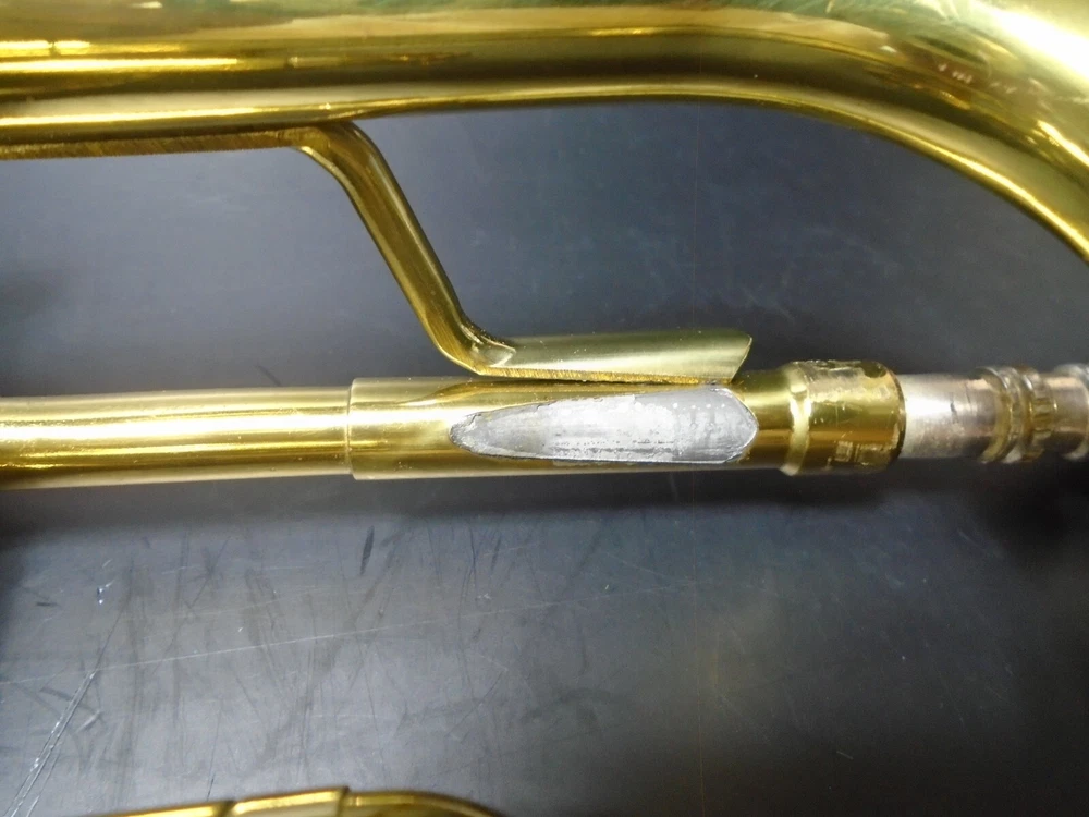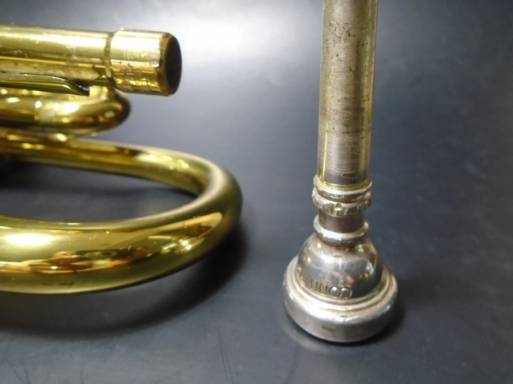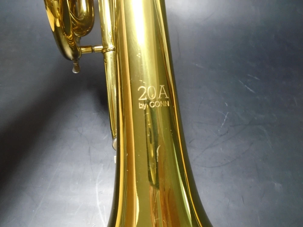 Up for sale is a Conn 20A student trumpet and mouthpiece for parts or repair with hard case. I bought this at an estate sale. The owner told me that him and his son, tried to remove the mouthpiece with pliers and ended up twisting the upper tube and breaking a couple of welds on that tube (see pics). Air does goes through, but obviously, it does need to be repaired. The rest of the trumpet is in very good condition and functions as it should. I strive to accurately describe my items however, my perception may differ from yours so please make sure to carefully look at all pictures! Thanks for your interest!