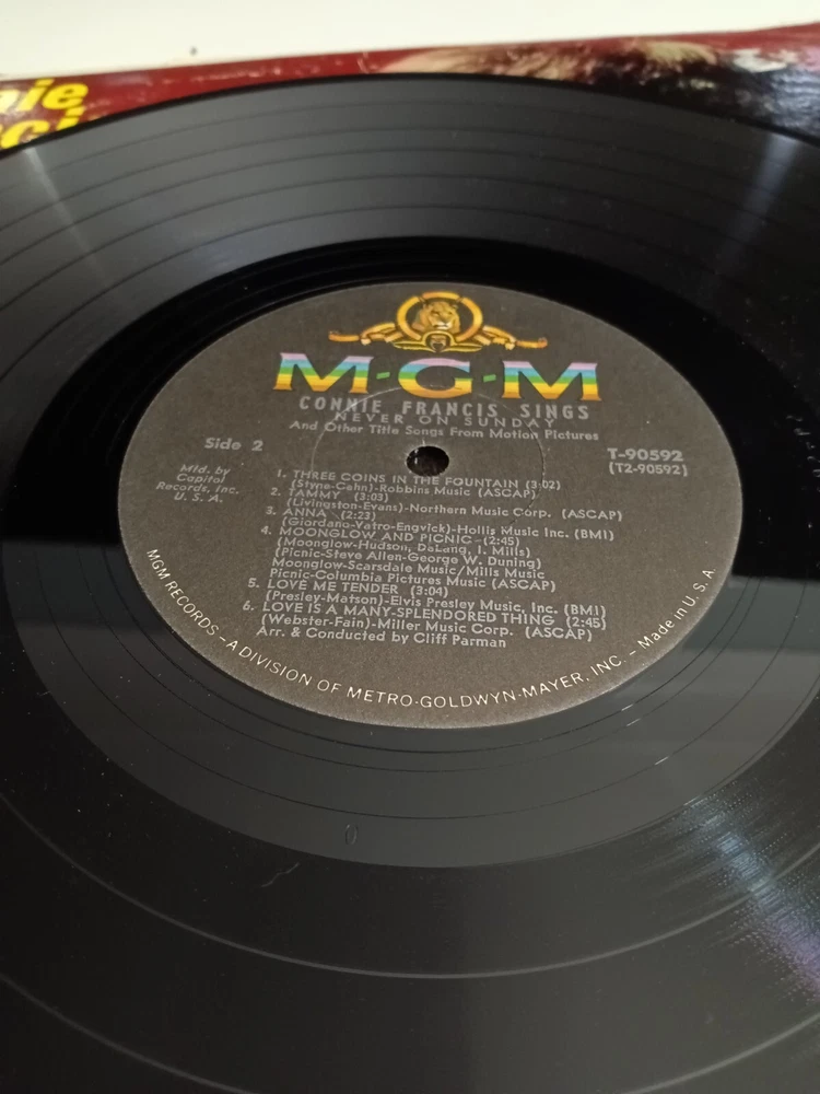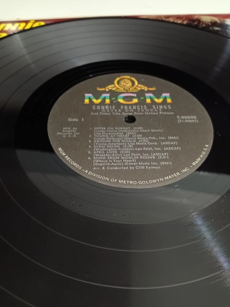 Features:Original Inner SleeveColor:MulticolorSleeve Grading:Very Good (VG)UPC:Does not applyRecord Label:MGM RecordsCountry/Region of Manufacture:United StatesRelease Title:Sings Never On SundayGenre:PopCase Type:Cardboard SleeveNumber of Audio Channels:StereoEdition:Special EditionStyle:VocalFidelity Level:High-FidelityCatalog Number:t 90592Era:1960sLanguage:EnglishMaterial:VinylRecord Size:12"Format:RecordRecord Grading:Very Good Plus (VG+)Type:LPSeller Notes:“plays well and looks good”Instrument:RecorderOccasion:Birthday, Carnival, Christmas, Fourth of July, HalloweenRelease Year:1961Run Time:lpArtist:Connie Francisgtin13:Does not applyModified Item:NoCustom Bundle:NoSpeed:33 RPM