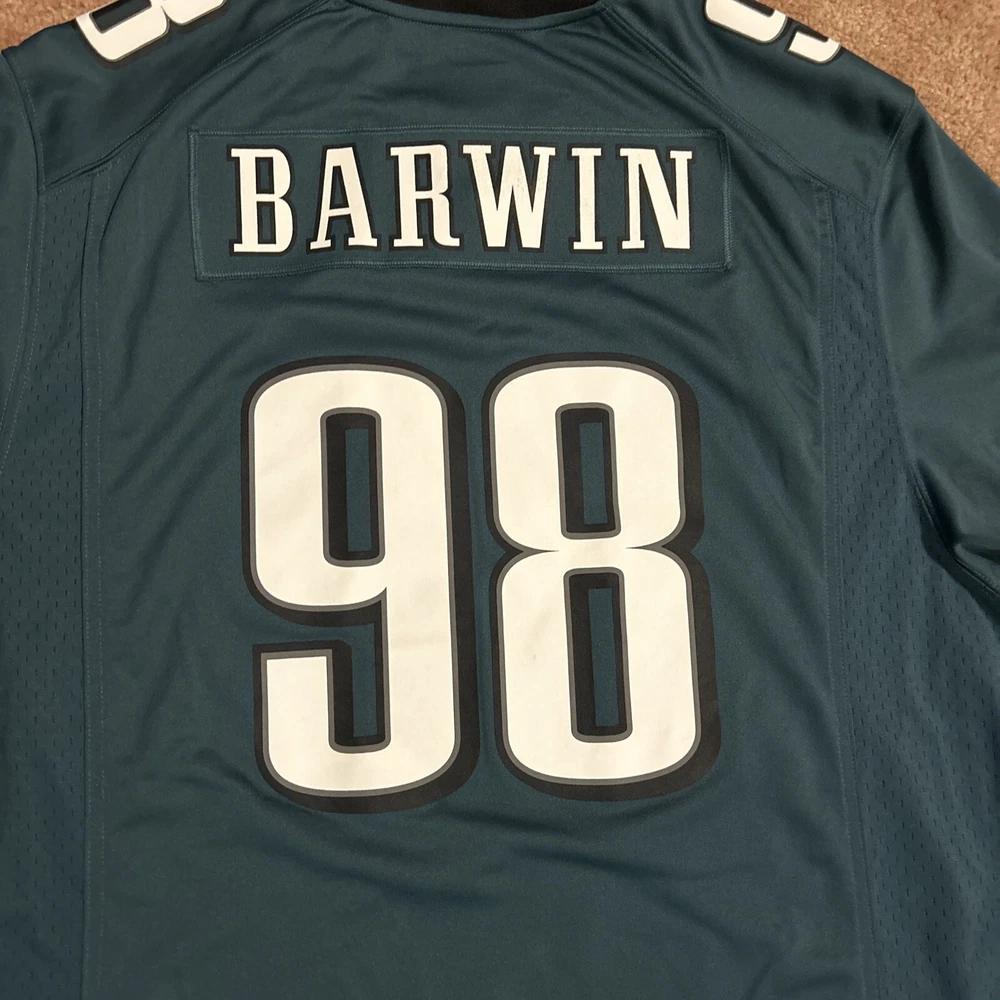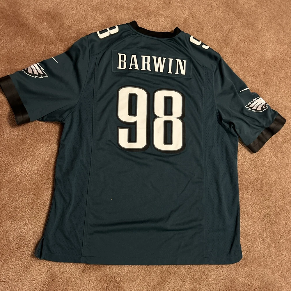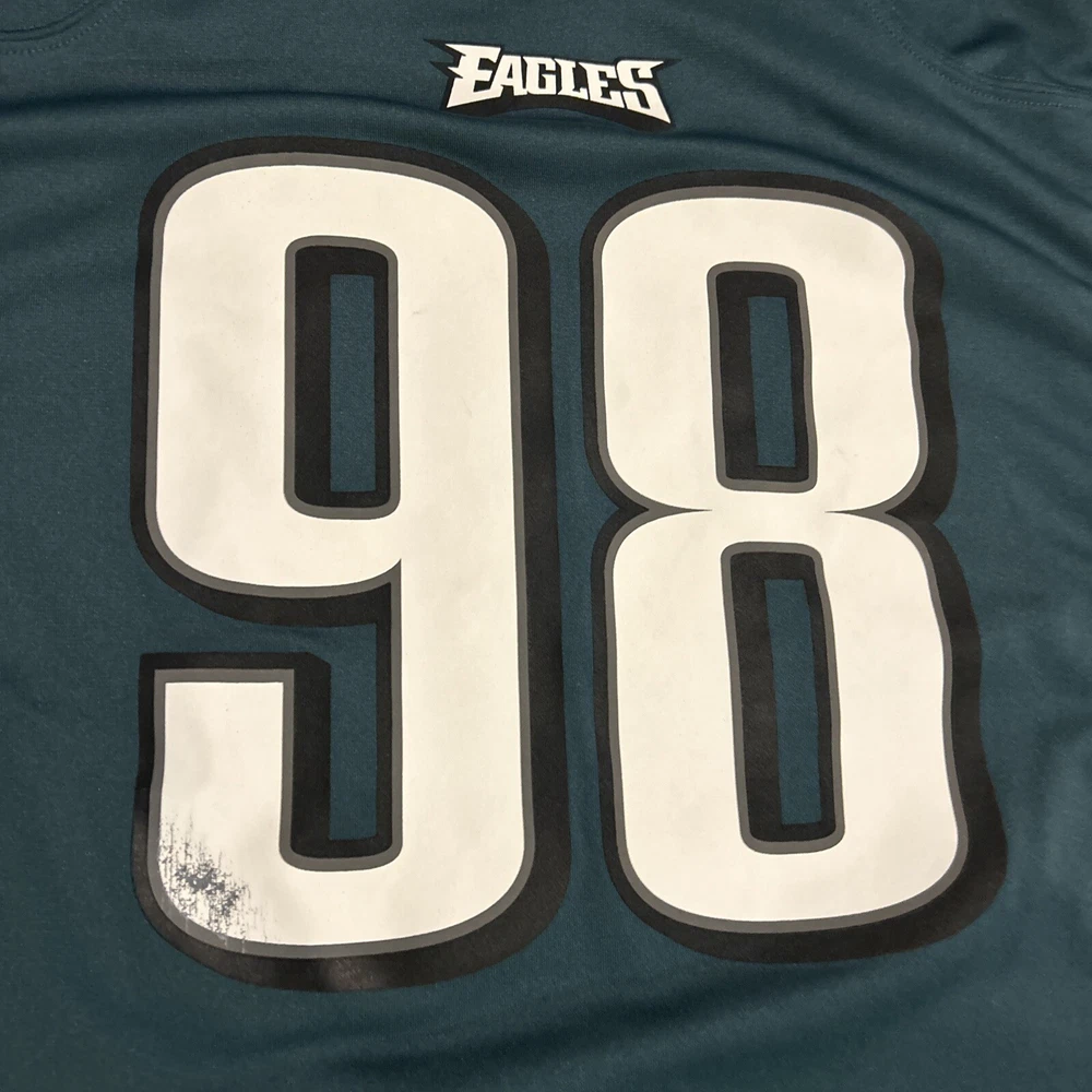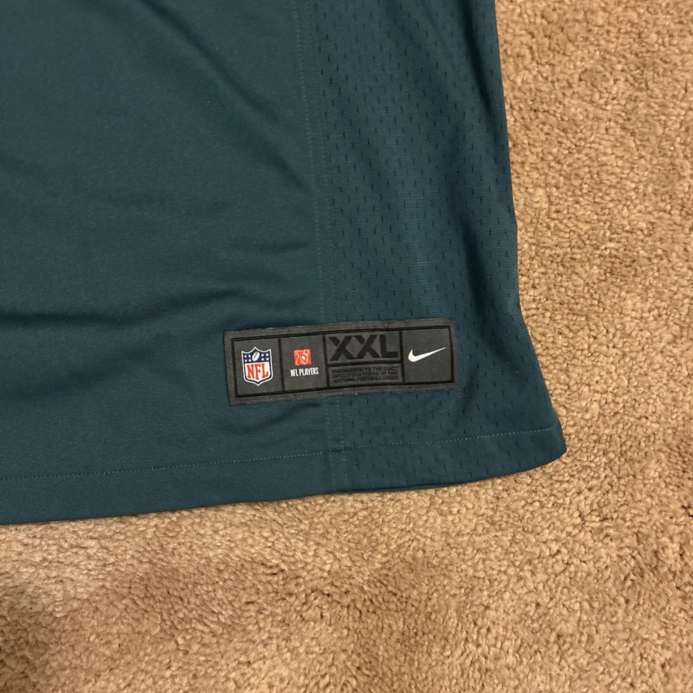 Small Wear on Front. Otherwise in Good Condition Show your support for the Philadelphia Eagles with this Connor Barwin #98 Nike On-Field jersey. Made for men in size XXL, this jersey is perfect for any football fan. The jersey features the iconic green color of the team and is made with high-quality materials to ensure durability and comfort. Represent your favorite team and player with this official NFL licensed jersey. Perfect for game day or any occasion, this jersey is sure to make a statement. Get your hands on this Nike On-Field Philadelphia Eagles Jersey today!