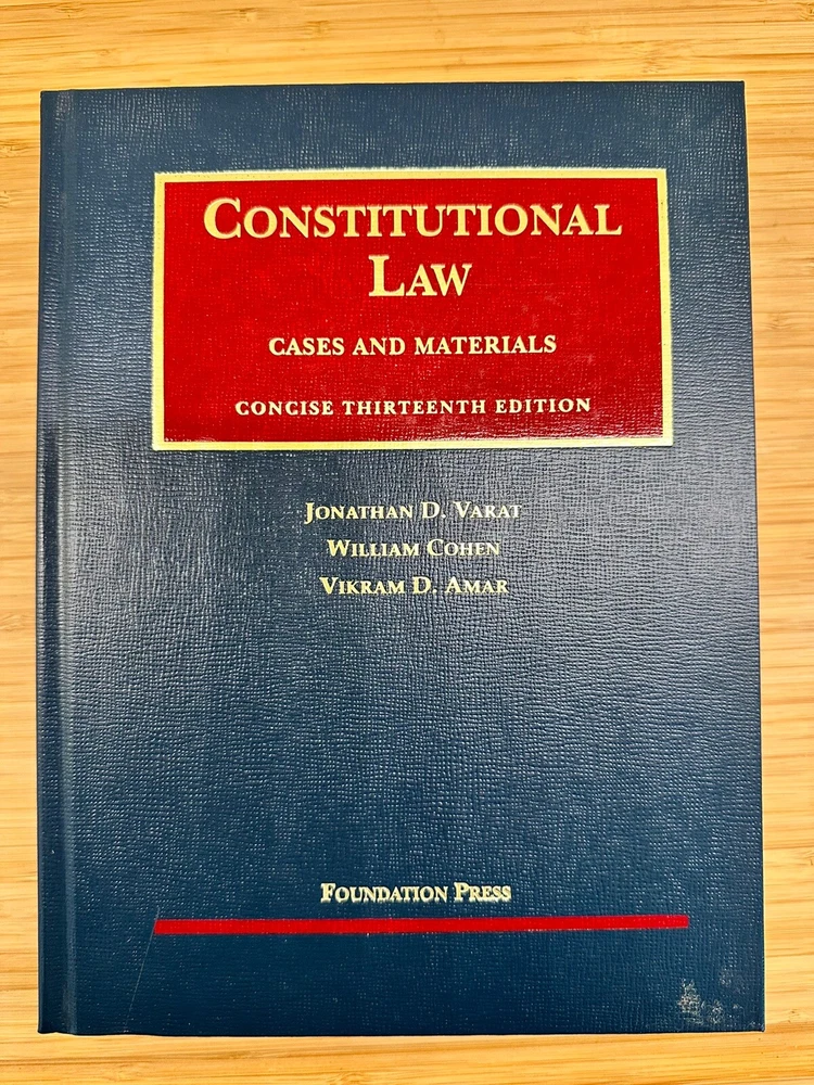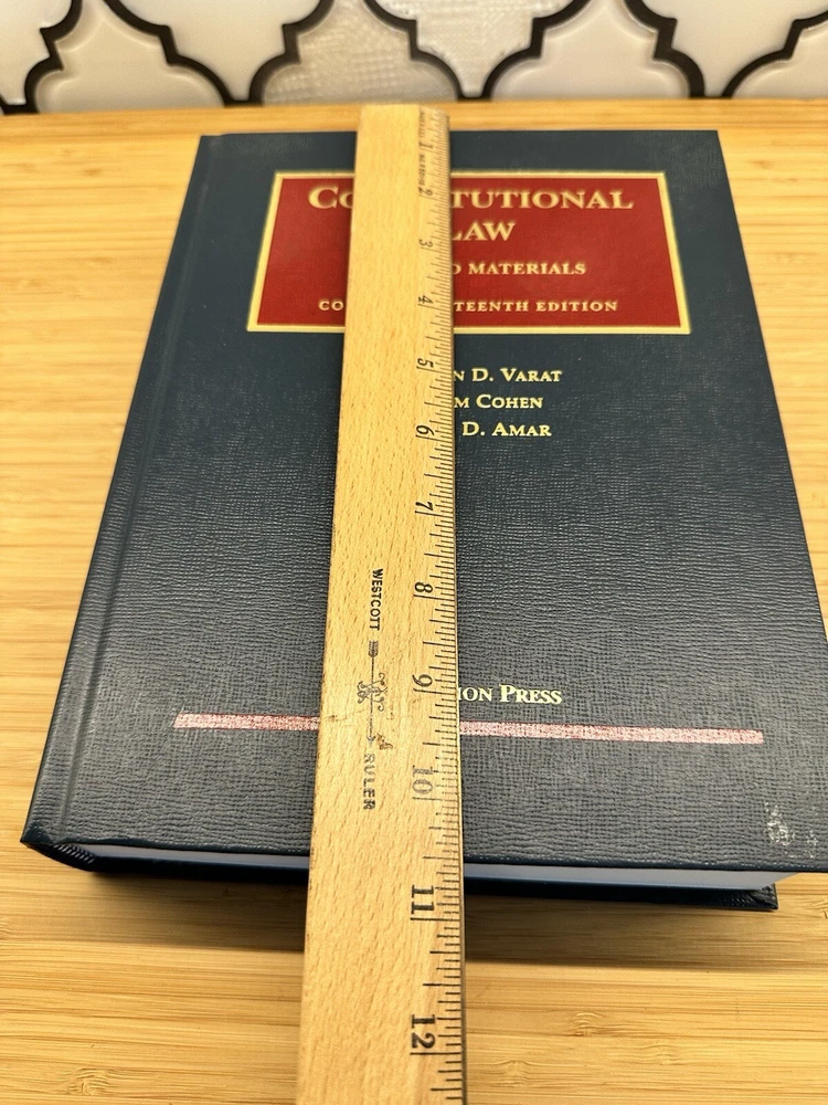 This textbook is an excellent resource for those studying constitutional law. It includes cases and materials necessary to understand the subject area. The book is published by Foundation Press and is part of the University Casebook Ser. The thirteenth edition is authored by Jonathan D. Varat, Vikram D. Amar, and William Cohen. This is the CONCISE 13th Edition. (Longer version of 2022 pages, I also have in my eBay store) The hardcover book has been measured and showed in pictures. It has 1213 pages. The book has never been cracked open and is a thirteenth edition. It is written in English and is intended for adult and further education, as well as law school. The publication was created to provide you with accurate and authoritative information concerning the subject matter covered. New, never been cracked open. PLEASE NOTE: I have approximately 100 law books that are either listed in my EBay shop or will be listed over the next few weeks.