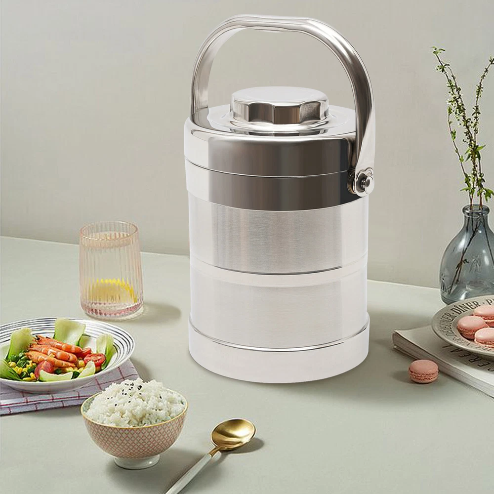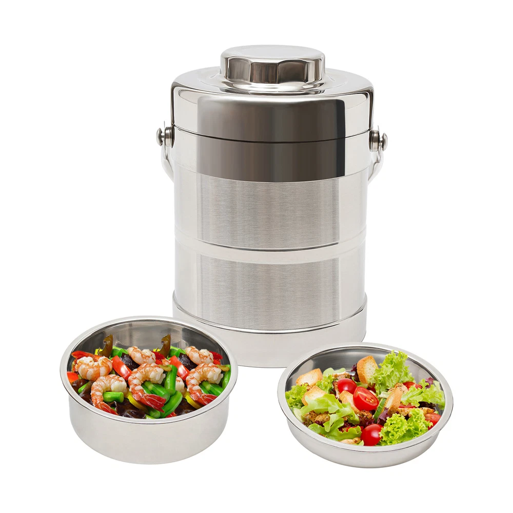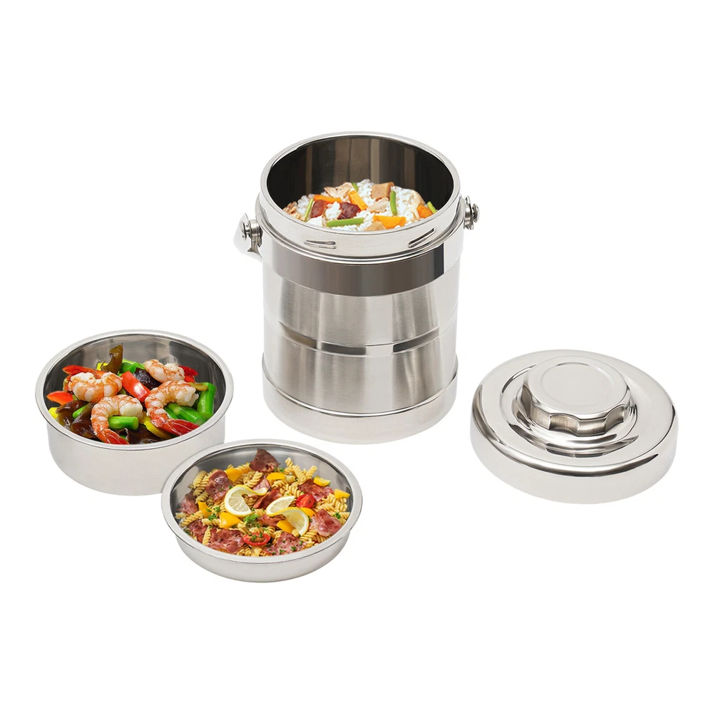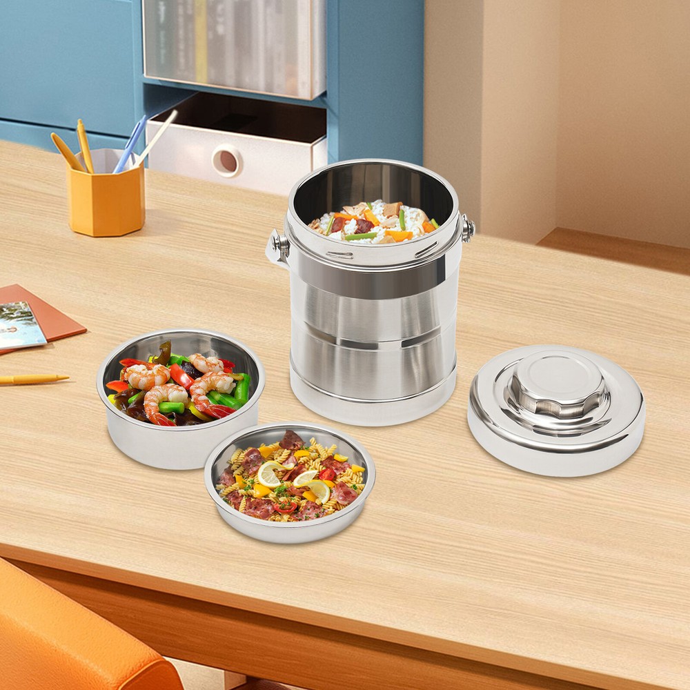 $ 14.293-Tier Sealed Stackable Food Thermos Silver Insulated Thermal Lunch Box