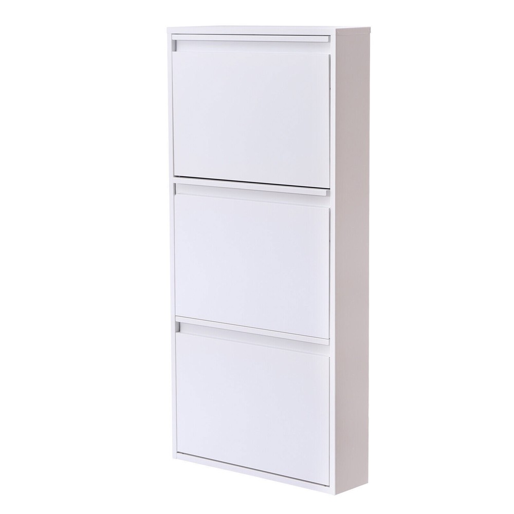 Contemporary Slim Shoe Drawers Shoe Cabinet For Entryway Entrance Hallway Foyer Description Do you believe that? A small entryway can be turned into a storage treasure trove. If you don't believe it, you can try our shoe cabinet. The three-tier design of this shoe cabinet can hold up to 9 pairs of shoes and the wall-mountable installation can save more space in your entryway. Hurry up and take it home with you! Specification Style: Modern Color: White Shape: Rectangular Number of Tiers: 3 Installation Type: Freestanding, Wall Mounted Material: Cold Rolled Steel Plate Thickness: 0.8mm/0.03inch Gross Weight: 13.5kg/29.76lbs Product Size: 50.5*12.2*103.3cm/19.88*4.8*40.67inch Package Size: 115*59*19cm/45.28*23.23*7.48inch Package Included 1* Shoe Cabinet Other Accessories for Installation Key Features High-quality Material: The shoe cabinet is made of 0.03inch thick cold rolled steel, which is tough and not easily deformed. And the inside of the back of the shoe cabinet is welded reinforcement plates to make the shoe cabinet last longer. Great Home Decor: In classic White with a simple design, this shoe storage cabinet provides a sense of modernization, which enriches your entire entryway and gives your house a new look, showing off your lifestyle. Large Capacity: The shoe cabinet has 3 tiers and can store up to 9 pairs of shoes to meet your storage needs. When it is mounted on the wall, the spare bottom floor can also be used to store slippers, etc. Humanized Design: Its surface is smooth without burrs, and it will not scratch the hand. The corners of the frame are designed with rounded corners, so you will not be injured during use. Relieving Your Fatigue: This beautiful shoe cabinet guards the door every day and welcomes you home. It allows you to put away your exhaustion as soon as you get home and start enjoying leisurely home life by taking off your shoes. Organized Lifestyle: This shoe cabinet cleverly integrates shoe storage into life, placing it at the doorway to store your messy shoes, making it pleasing to the eyes as soon as you open the door, bringing you an organized lifestyle. Thoughtful Design: Each layer is equipped with a damping switch and rubber magnetic suction, which not only reduces noise and prevents your hands from being injured when opening and closing, but also enhances the sealing of the shoe cabinet. Tipping Bucket Design: The entire shoe cabinet features a tipping bucket design for easy opening and closing, making it very easy to use. It also keeps dust out of the shoe cupboard. Space Saving: With a small footprint of 19.88*4.8inch at the bottom, it can be placed in every corner of the home. By using the doorway space wisely, even a small entryway can be turned into a storage treasure trove. Also, it can be mounted on the wall to save floor space. Easy to Clean: Its smooth surface makes it very easy to clean, all you need to do is wipe it down regularly with a dry cloth or wash away any serious stains. And the shoe cabinet is held in place with spring pins and is removable for easy cleaning. Avoiding Creases: This large capacity shoe cabinet can accommodate boots and medium boots, allowing them to stand securely or be placed at an angle to avoid wrinkles on the surface. Protective Shipping: In order to prevent the product from being damaged and bumped during transportation, we fill the package with anti-collision protection foam to protect your products to the maximum extent possible. Details Reinforced Shoe Hopper: The shoe hopper is reinforced on three sides, making it stable to open and close without wobbling. Top Platform: The top platform is spacious enough to hold keys, photo frames, etc., making it very practical. Pre-drilled Holes: There are four pre-drilled holes at the back of the shoe cabinet to allow you to fix the cabinet to the wall and prevent it from collapsing. Full Plate Layer: The layer rack is designed with a full plate, which can effectively prevent the ash on the bottom of the shoes from falling onto the shoes on the lower layer. At the same time, the full plate layer shelf places shoes more stably, and even high heels will not fall. Concealed Handle: The concealed pull handle is semi-circular. The curved shape is not only subtle and beautiful but also makes it easy to open and close the shoe cabinet without hurting your hands. Application It is suitable to be placed at the door, living room, or bedroom used to place slippers, casual shoes, high heels, boots, leather shoes, and other shoes, as well as some daily necessities such as keys, books, and umbrellas. It can be used as a bookshelf and storage rack. Installation 1. Place the shoe cabinet in the position where it is to be installed. 2. Mark the hole locations with a marker. 3. Punch the holes in the marked positions. 4. Insert the plastic expansion tube into the punched holes. 5. Screw the screws into the plastic expansion tube (halfway in first). 6. Align the shoe cabinet with the screw fixing holes and hang it. 7. Tighten the screws so that the back of the shoe cabinet fits snugly against the wall. 8. Check that the shoe cabinet is not loose. Notes Please note that this is a slim shoe cabinet that can accommodate shoes up to 4.72inch in height and 12.2inch in length. Please allow the slight color difference caused by the shooting light and 1-3cm error due to manual measurement, and make sure you do not mind before ordering. Payment Delivery details Terms of sales About us Contact us Payment We accept ebay payment 。 Fees such as import duties, taxes are not included in the item price or shipping costs. These charges are the buyer's responsibility. Delivery details Shipping: 2-9 working days to: USA Terms of sales We maintain high standards of excellence and strive for hundred percent customer satisfaction. Feedback is very important to us. We hope that you contact us immediately before you give neutral or negative feedback, so that we can address your concerns. It is impossible to