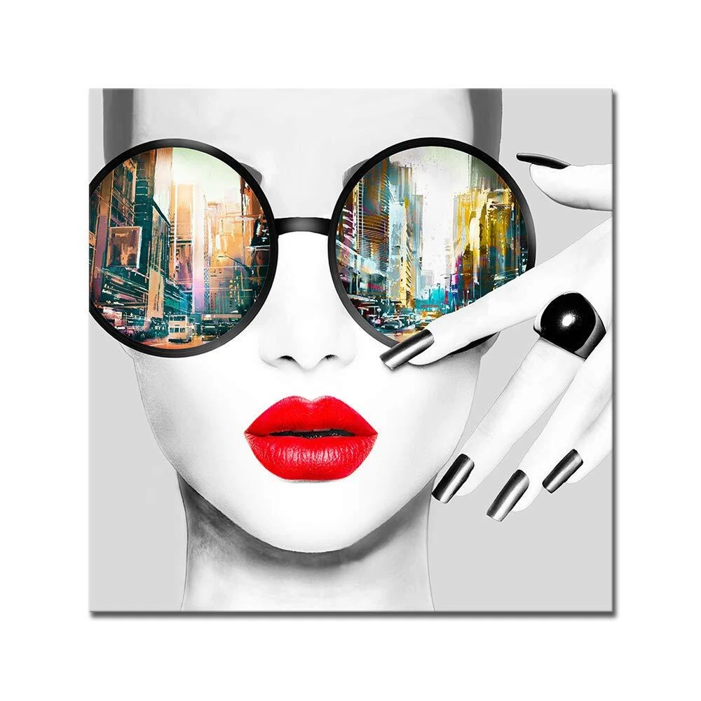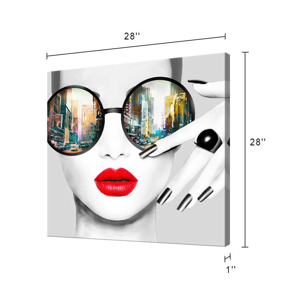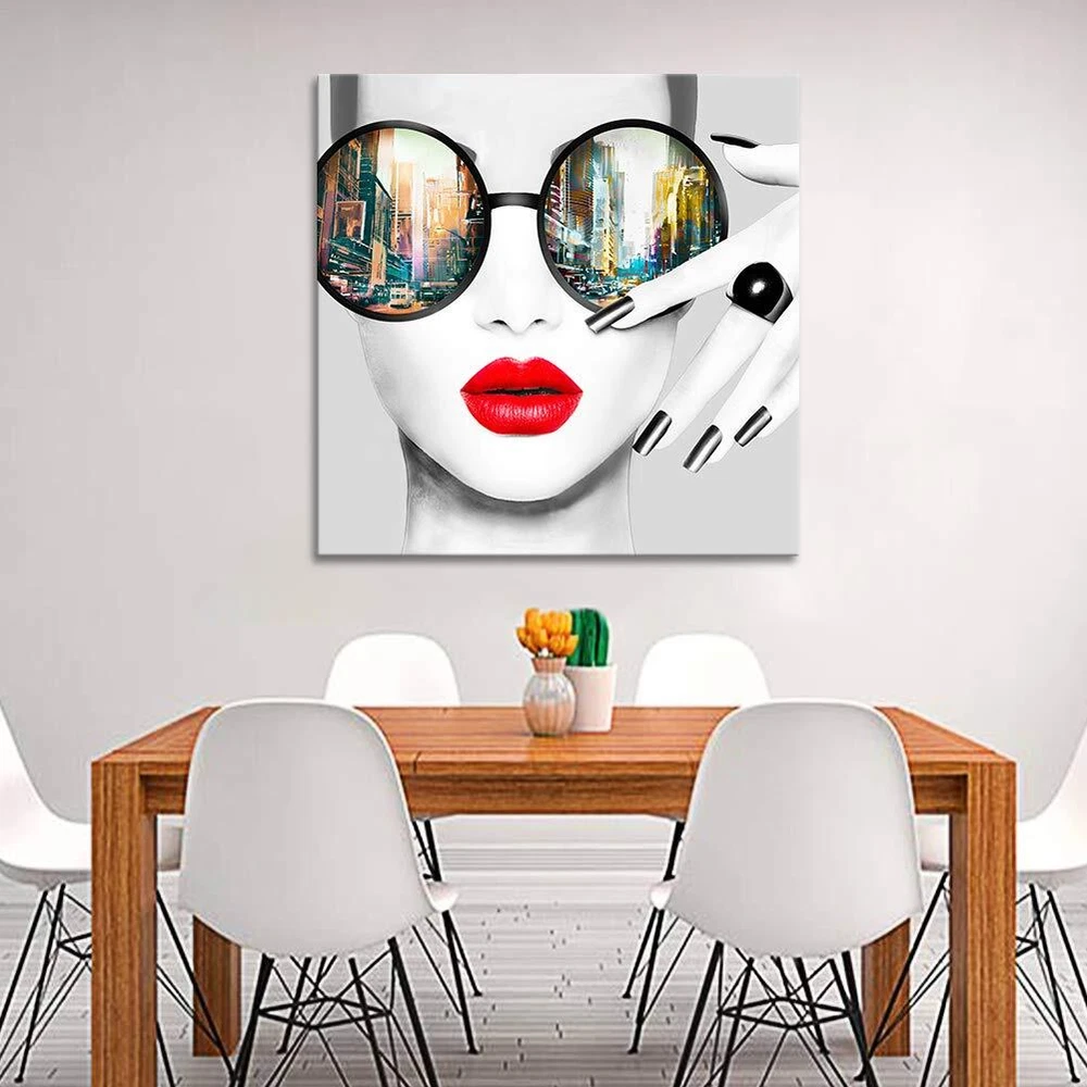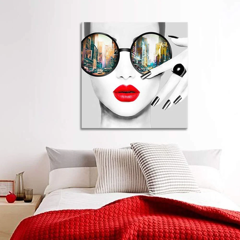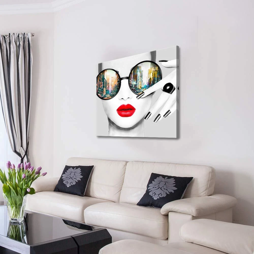 Contemporary Wall Art Modern Fashion Women with Red Lip Canvas Print Stylish ...