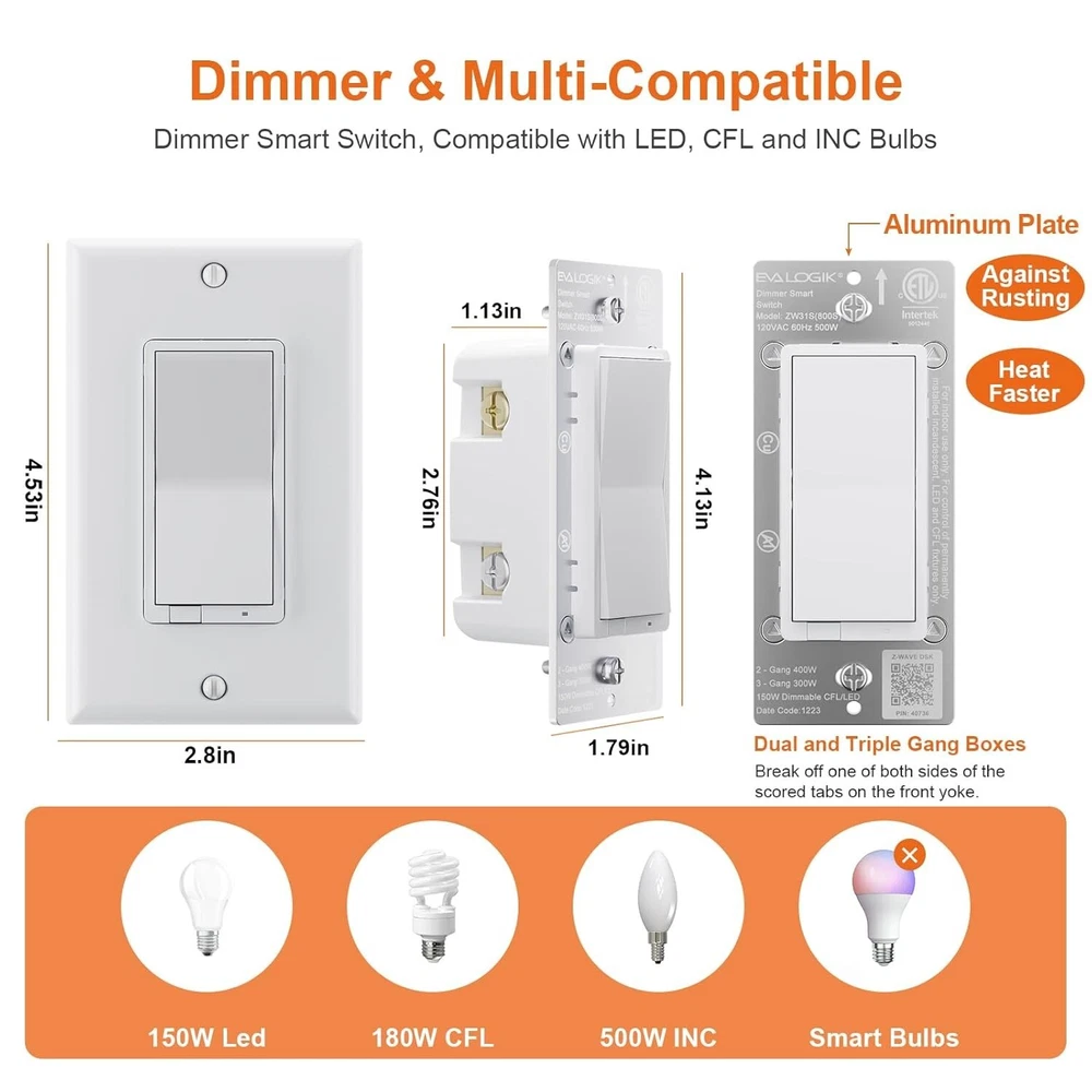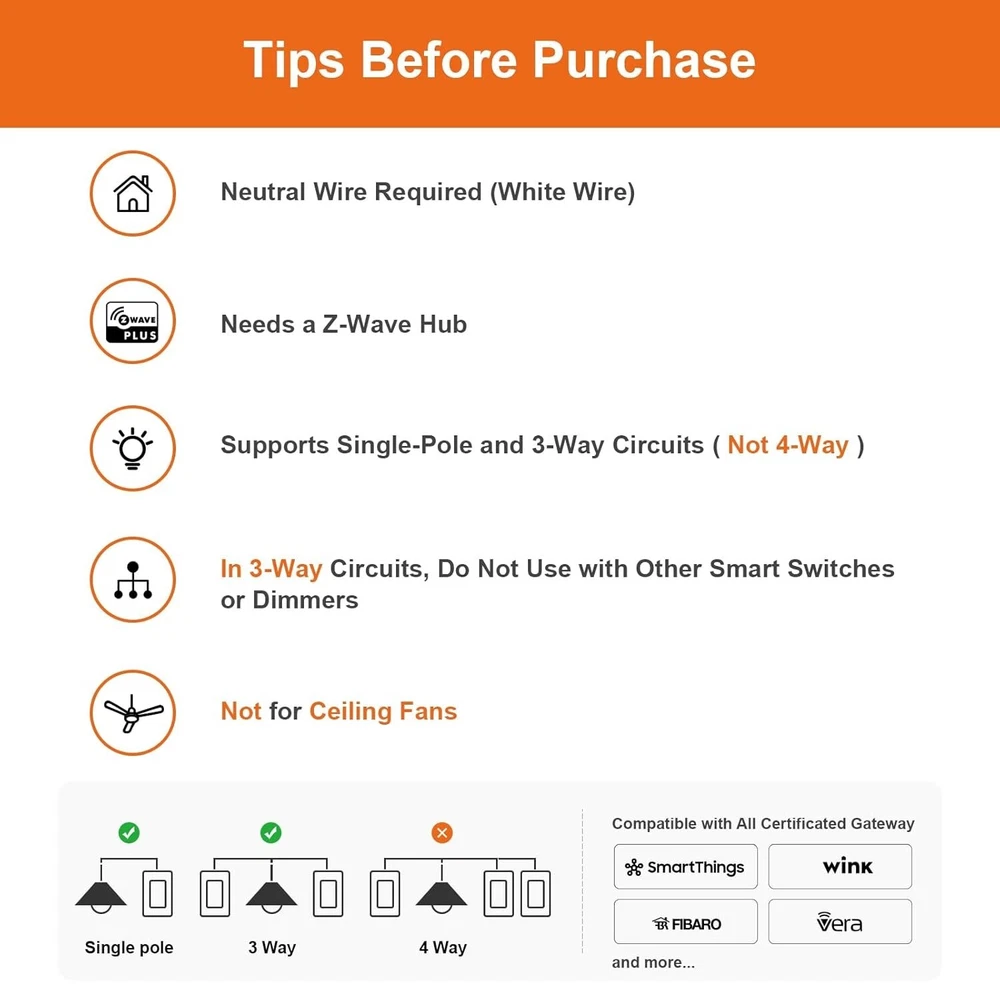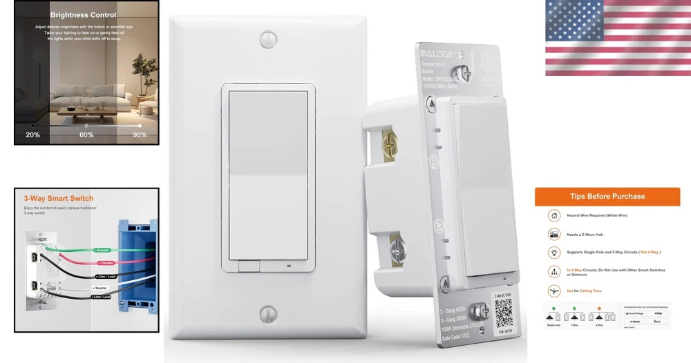 Convenient Z-Wave Dimmer Light Switch - Remote Control for 3-Way Setup ‹ › ‹ › ‹ › ‹ › ‹ › ‹ › ‹ › ‹ › ‹ › ‹ › ‹ › Convenient Z-Wave Dimmer Light Switch - Remote Control for 3-Way Setup Product Features: Z-Wave Dimmer Switch: Effortlessly control your lights—turn them on, off, or dim directly from the switch or via your smart hub's app. Compatible with quality dimmable bulbs including Cree, Ecosmart, Philips, GE, Sylvania, and Sunco. Ensure a load of not more than 500W for incandescent lights or 150W for dimmable CFL or LED , with a minimum of 5W for LED bulbs required. Note: Neutral wire and hub sold separately. Z-Wave Repeater Long Range: Experience enhanced connectivity with built-in Z-Wave repeater technology. Extend your wireless coverage up to 1300ft (dependent on the compatibility of your hub) while acting as a signal extender in your smart home network. Faster Installation: With a reduced housing depth of only 1.18" , installation is quicker than ever, taking half the time compared to previous models—perfect for shallow or crowded electrical boxes. Affordable 3-Way Solution: Seamlessly integrates with traditional 3-way switches—no additional companion switch needed. Compatible with standard ON/OFF (non-smart) switches, but ensure the power line is directly wired to the 'Line/Load' terminal on the switch. Only supports single-pole and 3-way circuits. Remote & Voice Control: Fully controllable via compatible Z-Wave HUB, allowing remote access from anywhere. Integrate with voice-controlled systems through a Z-Wave hub for smart home convenience with Alexa and other smart speakers (note: cannot connect directly to ECHO PLUS). Trusted and Reliable: With over 10 years of experience, our smart switches have passed ETL and FCC safety certifications. Reach out with any questions for prompt assistance. Why Choose Our Z-Wave Dimmer Light Switch? Transform your home lighting experience with our state-of-the-art Z-Wave Dimmer Light Switch. Enjoy the perfect blend of convenience and sophistication as you control your lights with ease—whether you're home or miles away. With its robust features and trusted reliability, your lighting is not just smart; it's intuitive. Don't settle for ordinary when you can have extraordinary. Upgrade to our Z-Wave Dimmer Light Switch today and illuminate your space with unparalleled grace! Shipping Free & Fast Shipping - We offer free shipping to most of the USA with a normal delivery time of 3-7 days. However, due to the current situation, additional delivery time (up to 3 weeks) may be required for some items. Alternative Carriers - We may use alternative carriers (e.g. USPS, FedEx, UPS, etc.) to ensure your package arrives safely and on time. Due to the use of multiple carriers, we are unable to provide a tracking number automatically. Handling Time - Orders are processed and shipped within 1-2 business days of receiving cleared payment. Shipping Restrictions - Shipping to Alaska, Hawaii, Puerto Rico, Guam, and other US territories may incur shipping charges or delivery restrictions. Please contact us before ordering, or your order can be refunded/cancelled. State Restrictions - There may be restrictions based on your state of purchase. For example, certain items may not be shipped to California due to state regulations. Contact for Tracking Updates - If you require tracking updates or have any concerns about the delivery of your order, please feel free to contact us, and we will be happy to assist you. Return 30-Day Hassle-Free Returns - We want you to be completely satisfied with your purchase. If you are not, you can return the item within 30 days of receiving it for a full refund or exchange. Easy Return Process - To start a return, simply contact us and we will provide you with a prepaid return shipping label and detailed instructions. Restocking Fee - There are no restocking fees for returns. However, the buyer is responsible for return shipping costs if the return is not due to a seller's error. Refund Processing Time - Refunds will be processed within 5 business days of receiving the returned item in its original condition. Payment We accept all major credit cards, PayPal, and Apple Pay for your convenience. Your payment information is secure and encrypted to ensure a safe and seamless transaction. Please complete your payment within 3 days of purchase to avoid any delays in shipping. Feedback Your feedback is extremely important to us. We strive to provide the best products and customer service possible. If you are satisfied with your purchase, please take a moment to leave us a positive review. If you have any concerns or issues with your order, please contact us before leaving negative feedback. We are committed to resolving any problems and ensuring your satisfaction. Contact Us If you have any questions or concerns, please feel free to reach out to our customer support team. You can contact us through the eBay messaging system. We are available Monday to Friday, 9:00 am to 5:00 pm EST, and we will do our best to respond to your inquiry within 24 hours. Buy it now and enjoy a pleasant shopping experience! UPC: Not Set Model: Not Set Item Height: Not Set Item Length: Not Set Item Width: Not Set Unit Quantity: 5.93 ounces Smart Home Compatibility: Wink,SmartThings,Alexa Features: App-Controlled,Remote Control,Wireless,Z-Wave Repeater,Dimmable Application: Electrical Wiring,Home/Garden,Light Control Suitable For: Wall Smart Home Protocol: Z-Wave Material: Plastic,Electronic Components Control Style: Push Button,Remote Control Mounting Style: Panel,Standard Room: Any Room,Bedroom,Kitchen,Living Room Resistance Properties: Dust Resistant,Moisture Resistant Brand: Unbranded Operation Method: On/Off Port Type: Screw Plug Type: N Switch Style: Decorator/Rocker Type: Dimmer Wall Switch Current Type: AC Current Rating: 4-10 A Voltage: 101-120 V Finish: Brushed Nickel Box Shape: Rectangular Maximum Amperage: