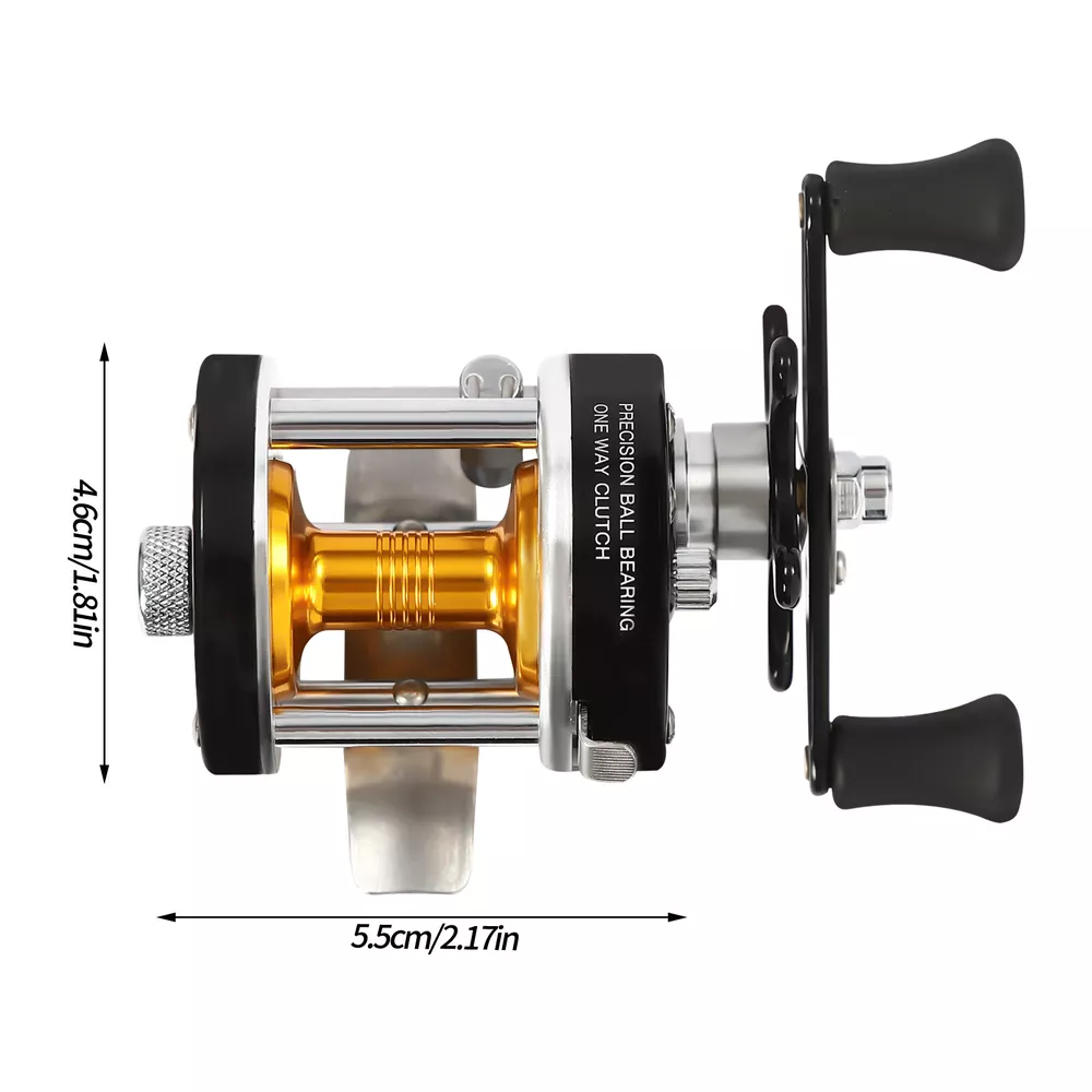 Reel Size: 5.5*4.6cm/2.16*1.81in Gear Ratio: 3.2:1 Brand: Unbranded Material: Metal, EVA, Stainless Steel, Brass Department: Unisex Adults Fishing Type: Freshwater Fishing/Saltwater Fishing Maximum Drag: N/A gtin13: Does not apply Reel Type: Round Baitcasting Reel Line Capacity: 4.53kg/86.87m/10lbs/95yard; 0.3mm/90m/0.012in/98.4yard Ball Bearings: N/A UPC: Does not apply Braid Capacity: N/A Hand Retrieve: N/A Line Recovery: N/A Drag Style: N/A Fish Species: N/A