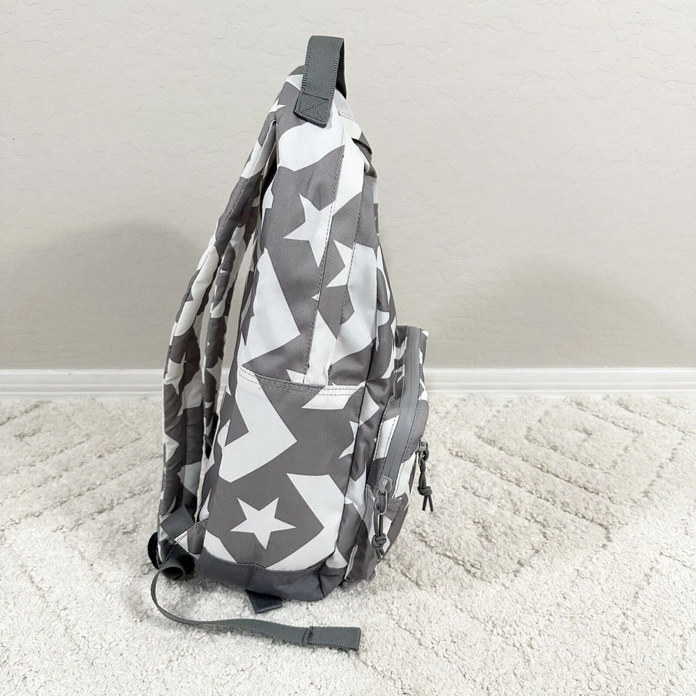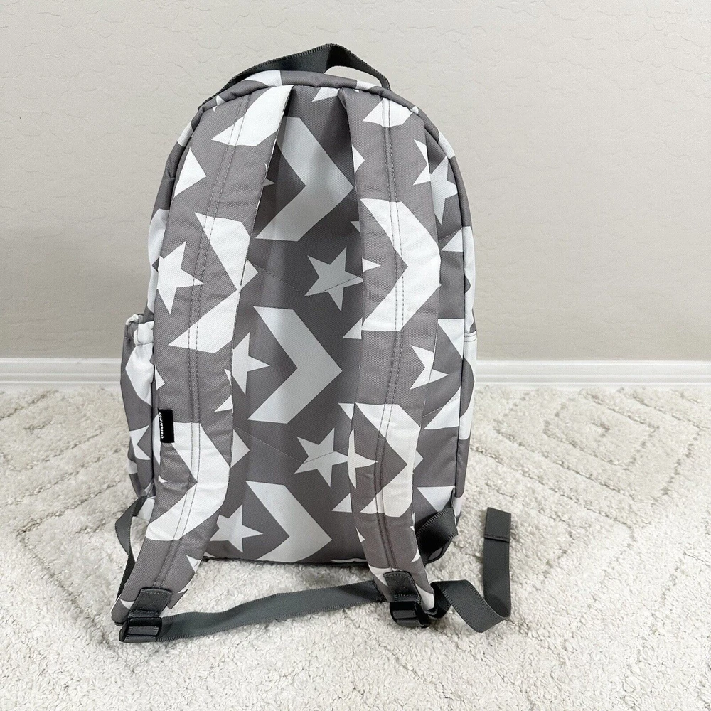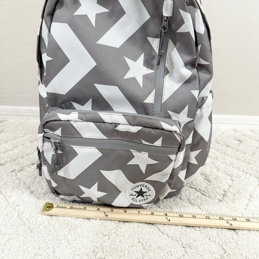 Handle Style: Top Handle Character Family: Converse Logo Stars Style: Backpack Size: Medium MPN: RN# 134134 Bag Depth: 6 Fabric Type: Canvas Seller Notes: “New Without Box/Tag ( See Photos for Details) From Pet/Smoke Free Home” Lining Material: Canvas Closure: Zip Theme: School Accents: Zipper Product Line: Converse Features: Adjustable, Adjustable Strap, Padded Brand: Converse Model: Converse Go Bag Height: 17 Handmade: No Color: Gray Department: Unisex Kids Occasion: Travel Bag Width: 11 Character: Stars Handle/Strap Material: 100% Nylon Personalize: No Material: 100% Polyester