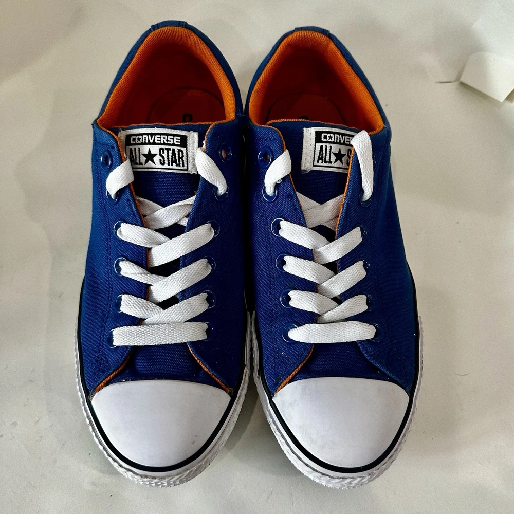 These sneakers are super comfy and in great condition! They fit perfectly even though they're junior size - I wear a women's 7.5 and they work great. The blue and orange combo is vibrant and perfect for showing team spirit. Love them!