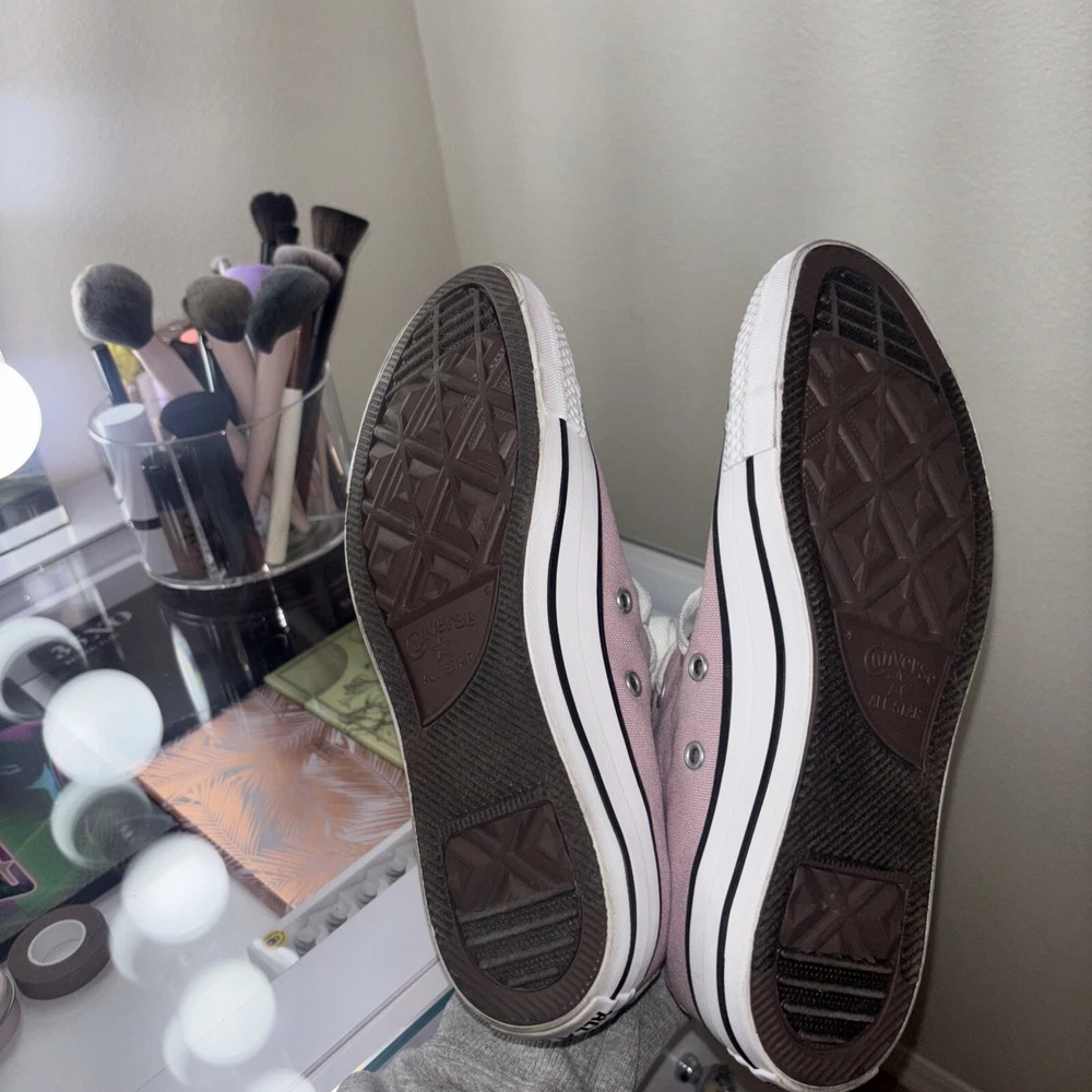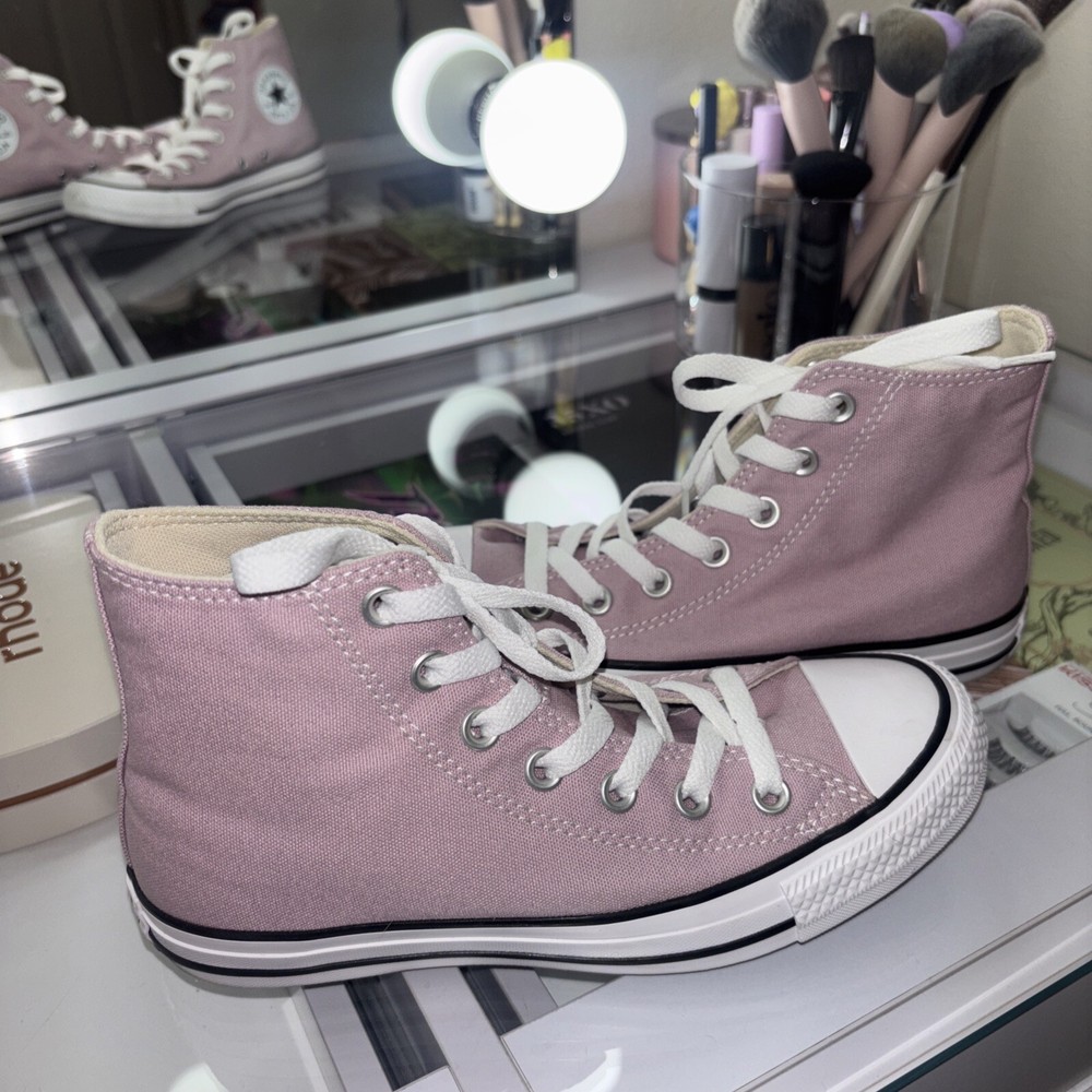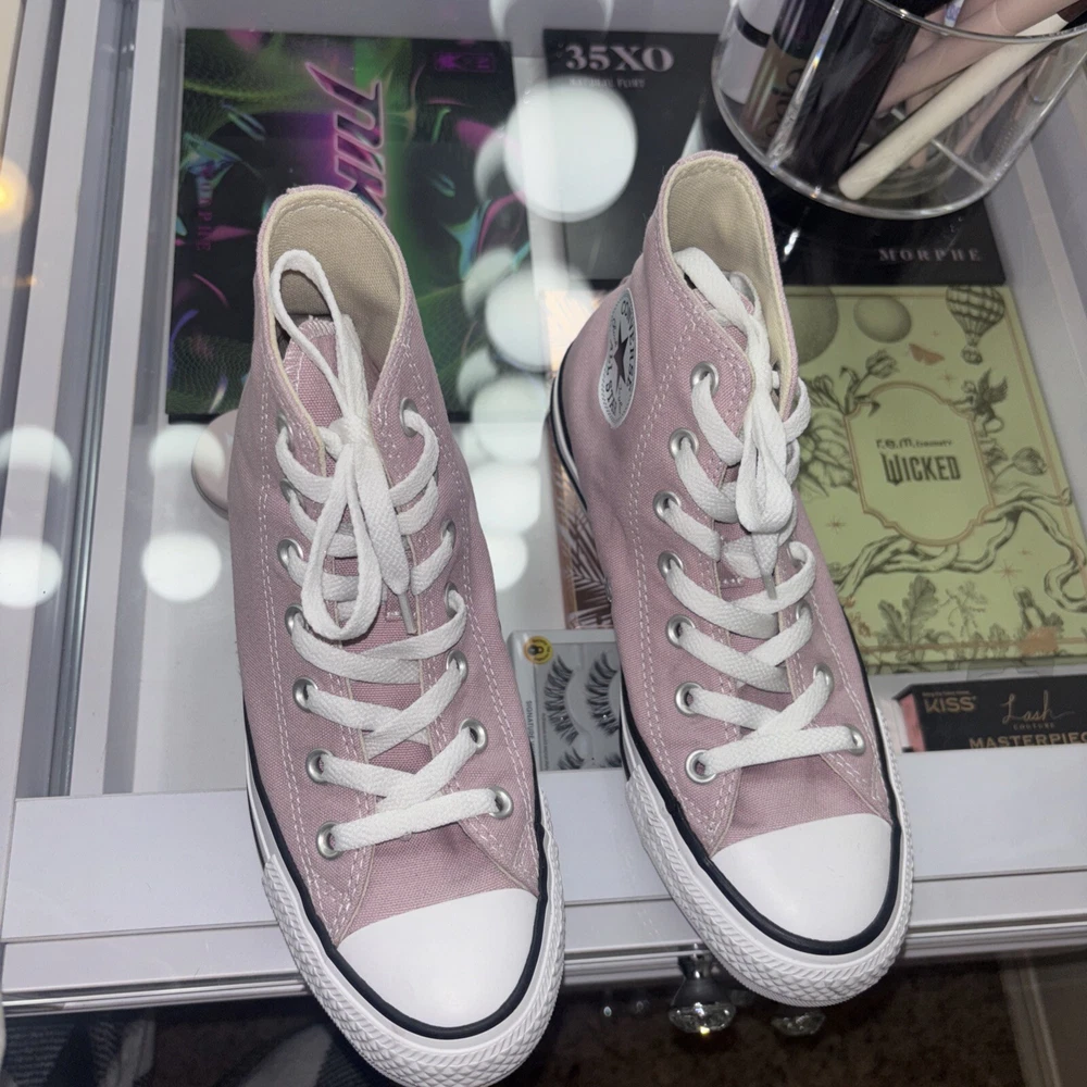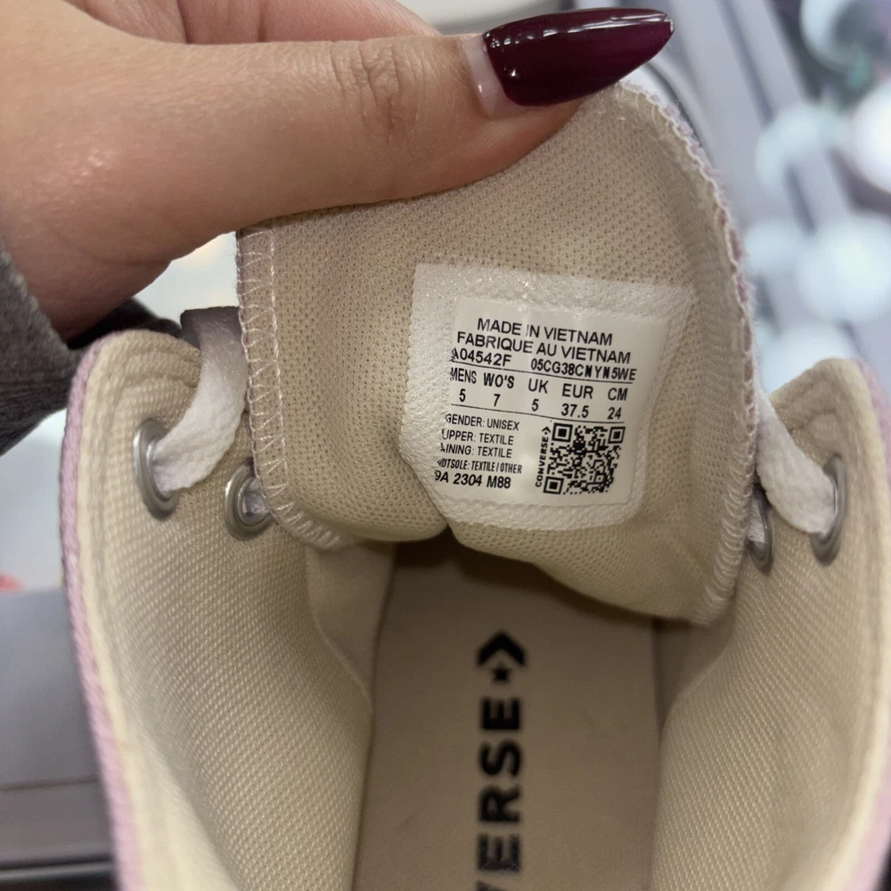 This is a pair of Converse Chuck Taylor All Star High sneakers in Phantom Violet color, featuring a suede upper material with a high-top shoe shaft style. The size is US 5 in Men ,The manufacturer color is listed as Phantom Violet/Egret/Phantom Violet, and the model belongs to the Converse Chuck Taylor product line. With a classic sneaker design and the iconic Converse branding, these shoes are a stylish and comfortable choice for casual wear.