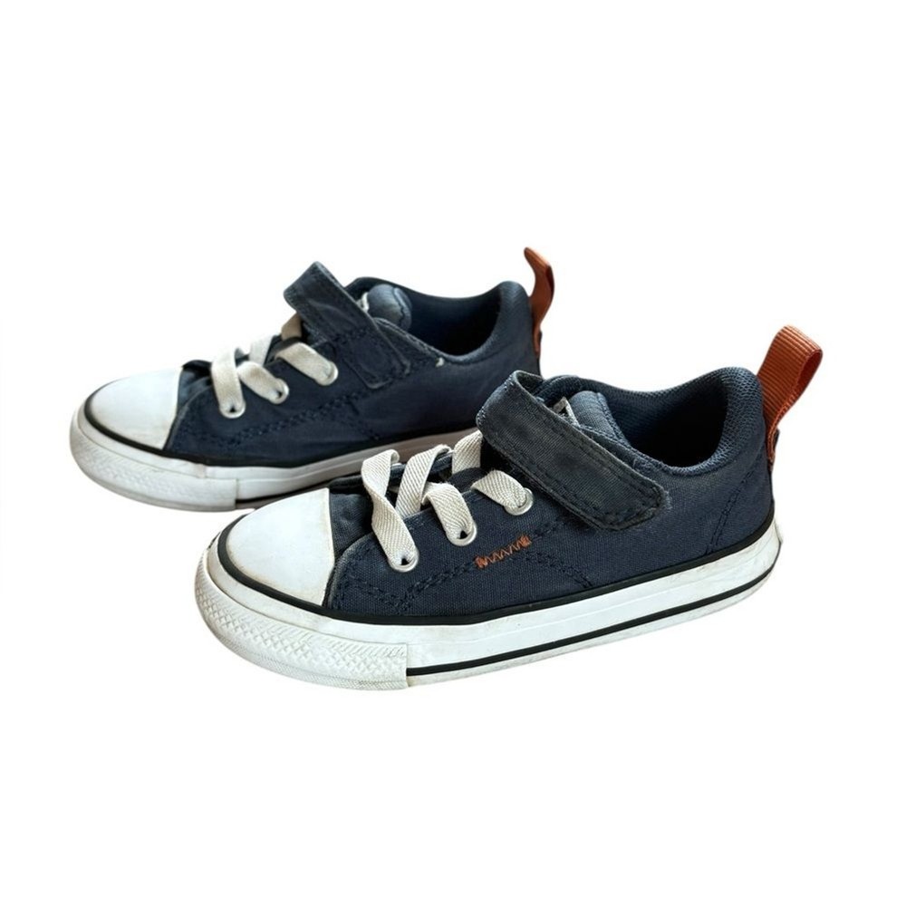 Converse Chuck Taylor All Star Malden Street Easy On Sneakers Toddler Boy Size 8 Very good preowned condition Classic canvas for that timeless Chucks look and feel Soft foam underfoot cushioning helps support comfortable play Adjustable strap, elastic laces, and a heel pull for easy on and off Padded collar and tongue for optimal comfort Color inspired by summer camps and outdoor exploration